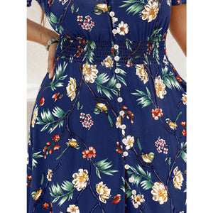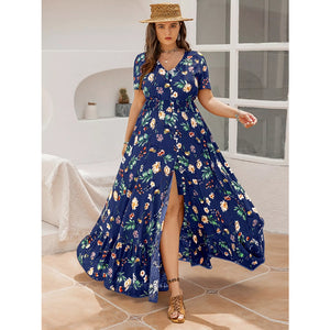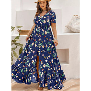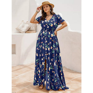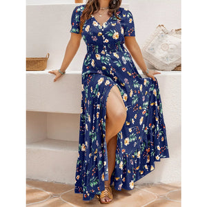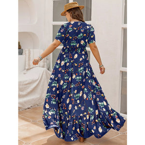 Plus Size Floral V-Neck Short Sleeve Maxi Dress