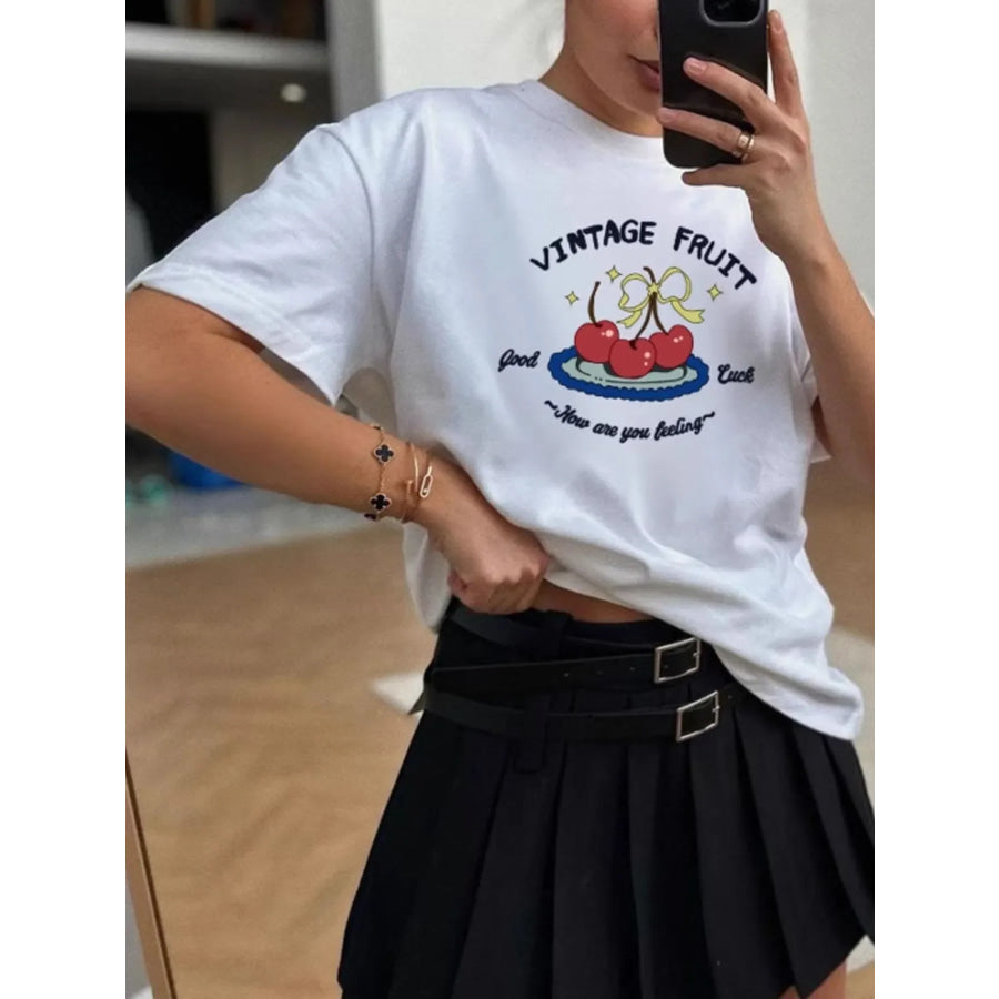 Plus Size Fruit Graphic Round Neck T-Shirt