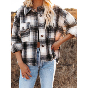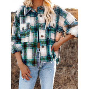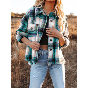 Pocketed Plaid Button Down Long Sleeve Shacket