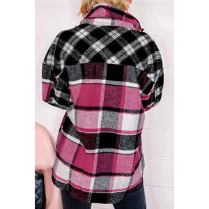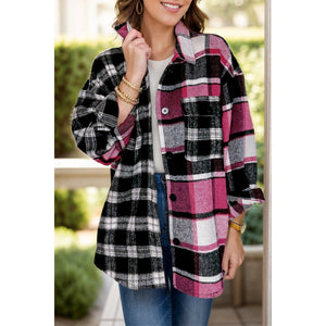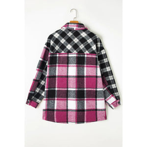 Pocketed Plaid Collared Neck Long Sleeve Shacket