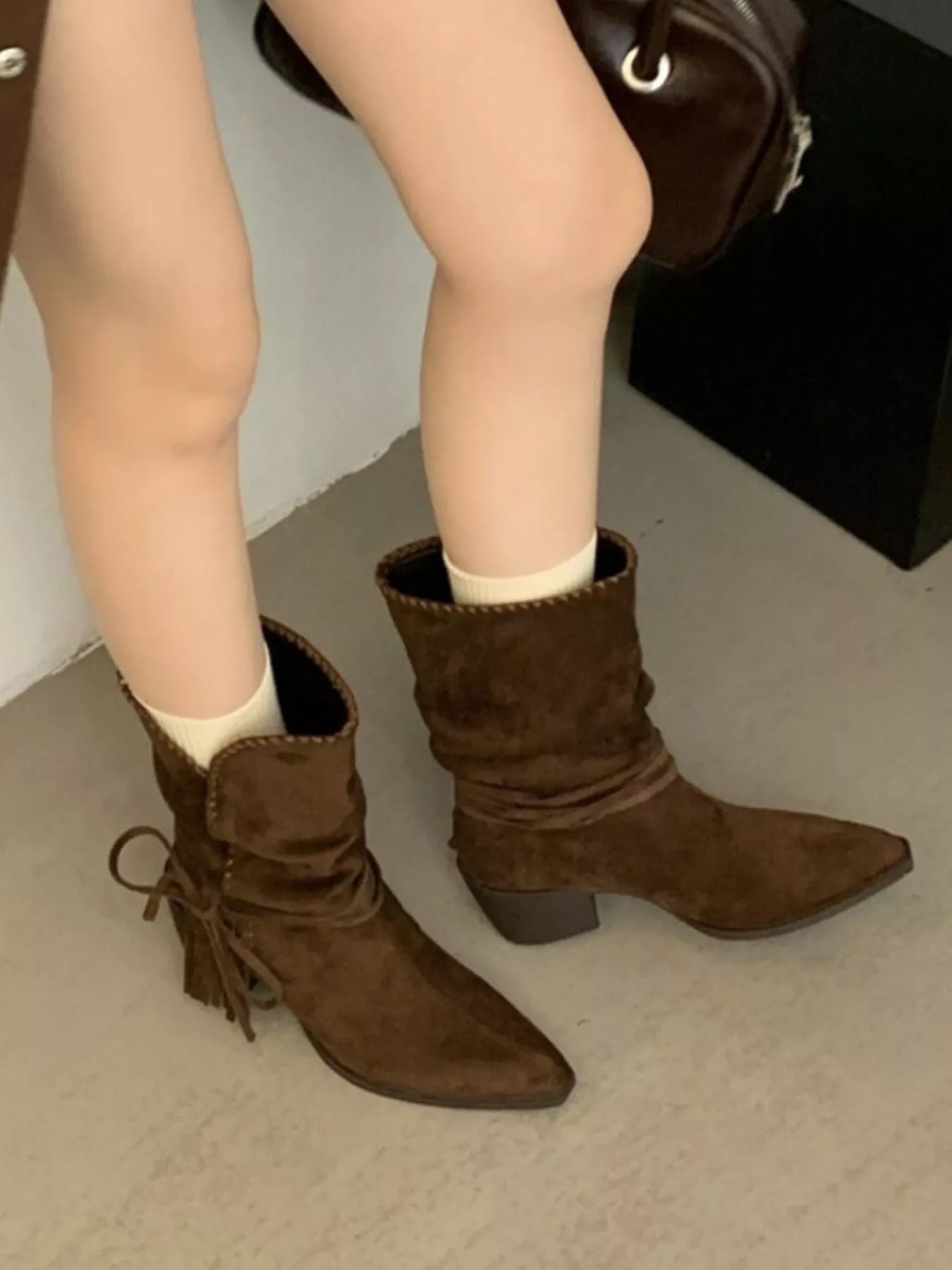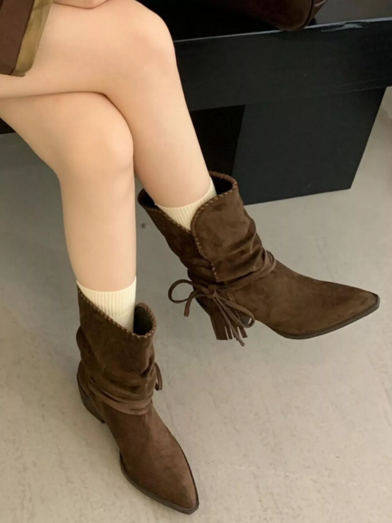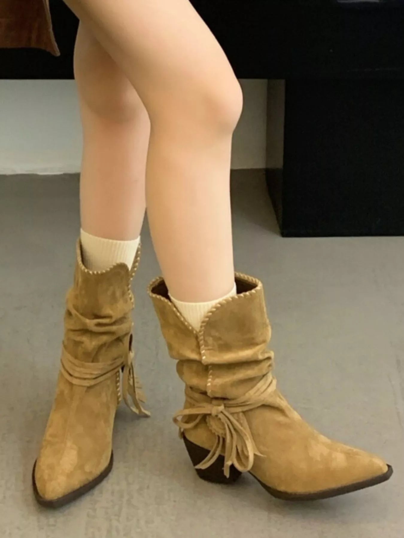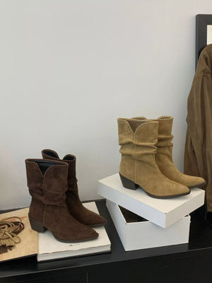 Point Toe Block Heels Boots