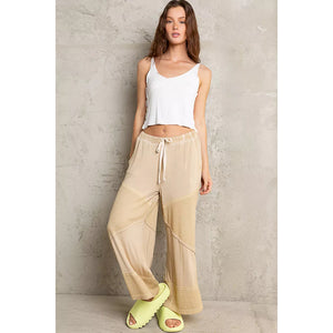 POL Elastic Waistband Wide Leg Pants with Drawstring