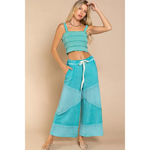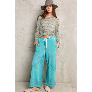 POL Elastic Waistband Wide Leg Pants with Drawstring