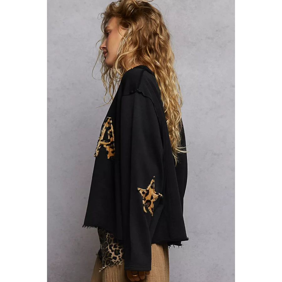 POL Round Neck Long Sleeve French Terry Sweatshirt with USA Letter Animal Patch