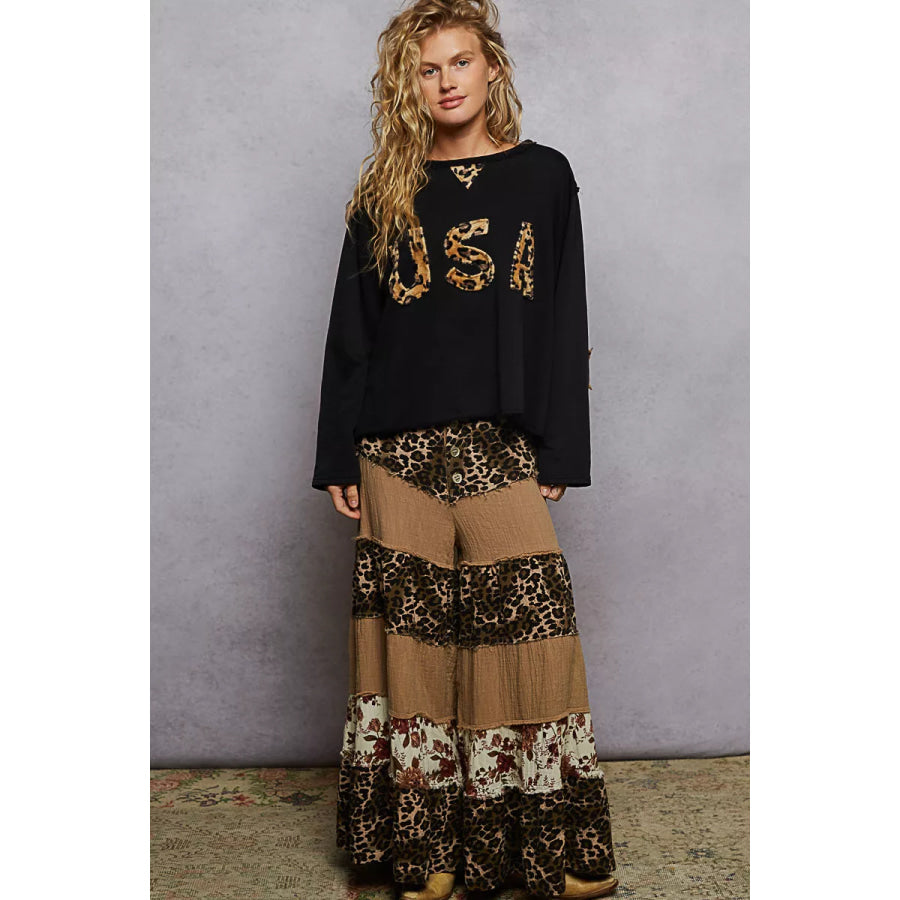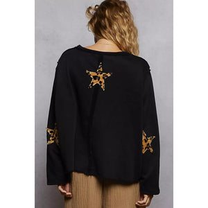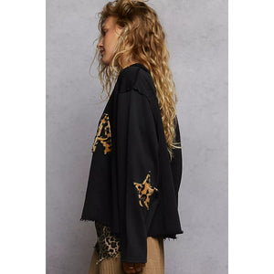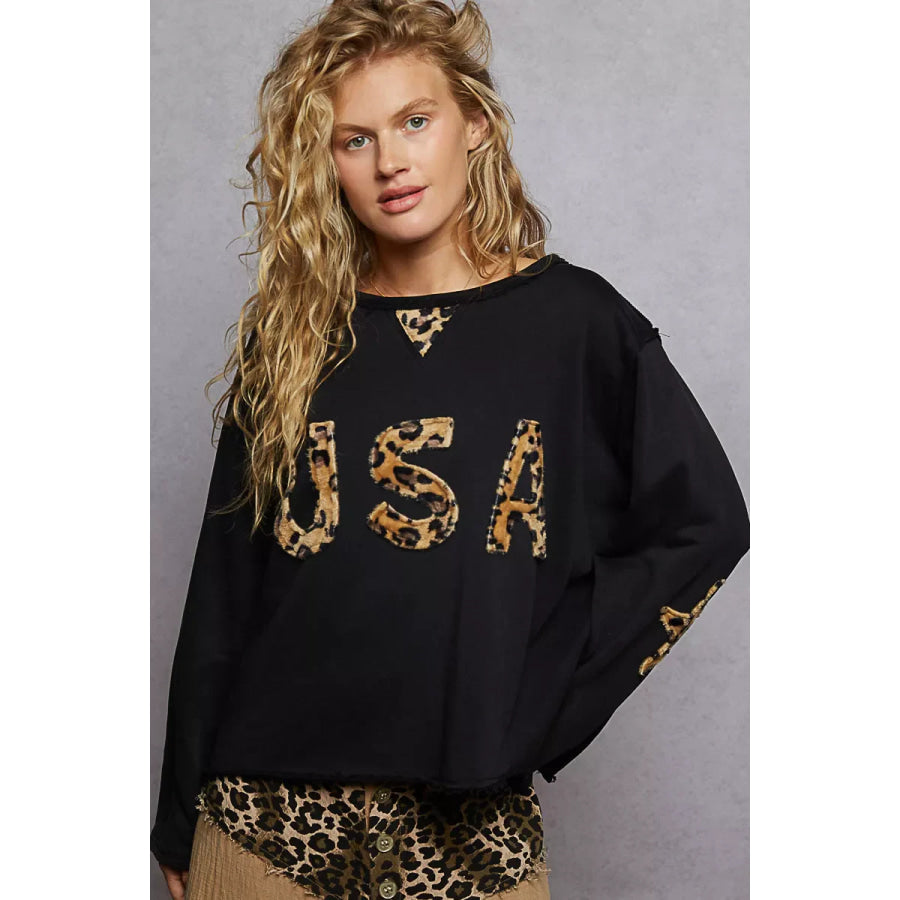 This round neck long sleeve top is designed with a relaxed fit and made from soft French terry fabric. It features a unique USA letter animal patch on the front for a playful touch. The outseam detailing adds a subtle accent to the design. With vintage washing, this top has a trendy worn-in look. Available in a solid color, this top is a stylish and comfortable choice for casual days.