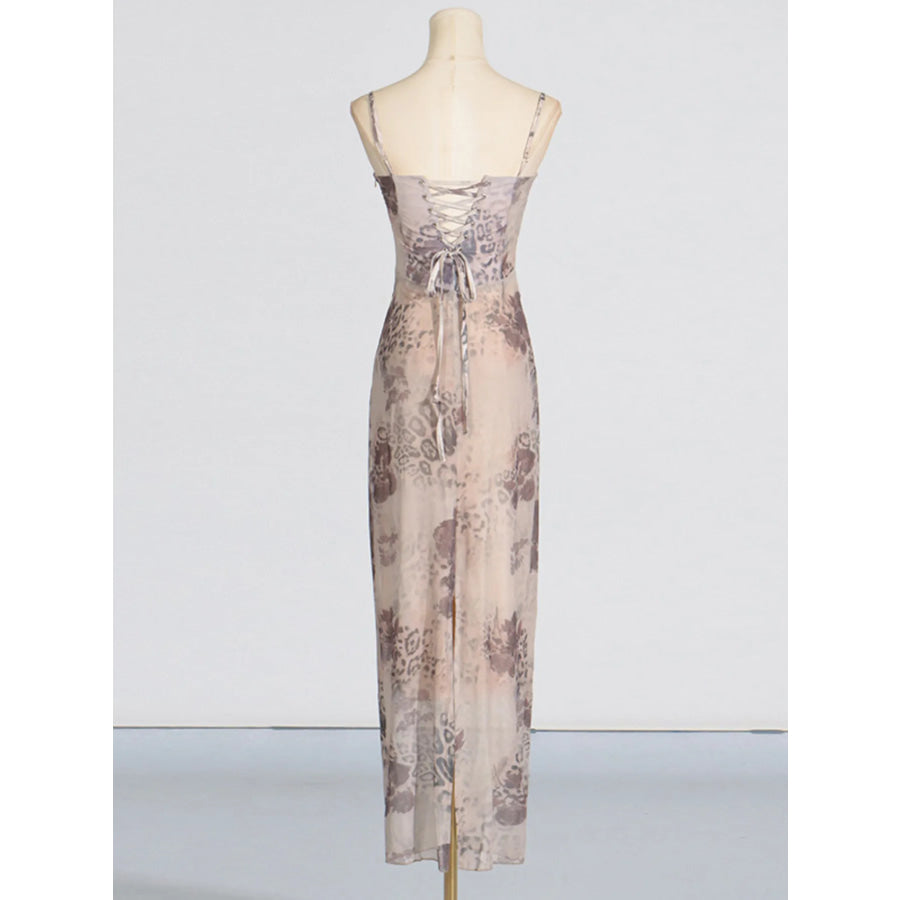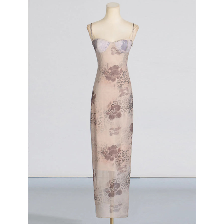 Printed Sweetheart Neck Bodycon Maxi Dress