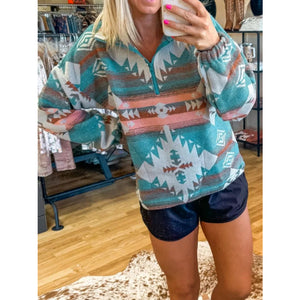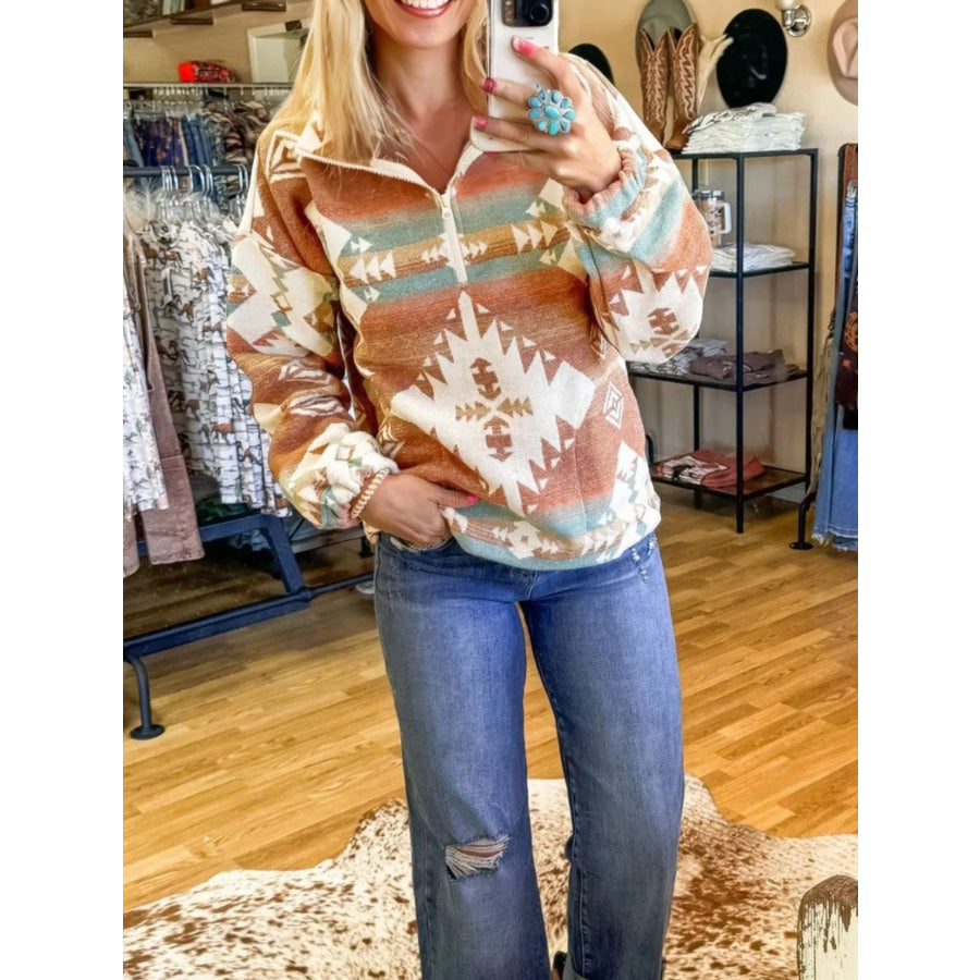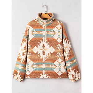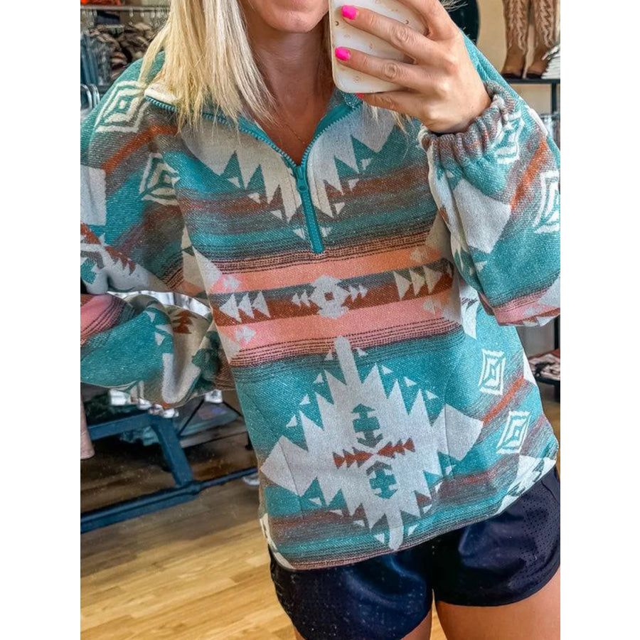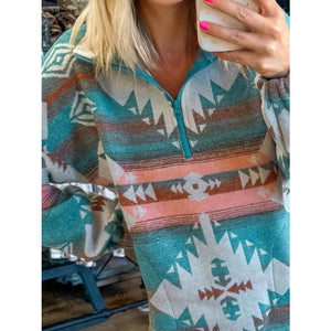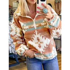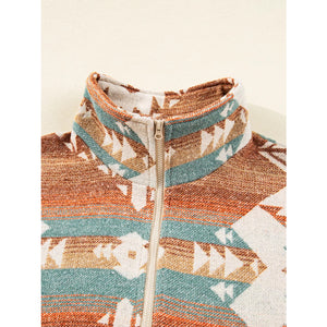Quarter Zip Elastic Cuffs Aztec Sweatshirt
