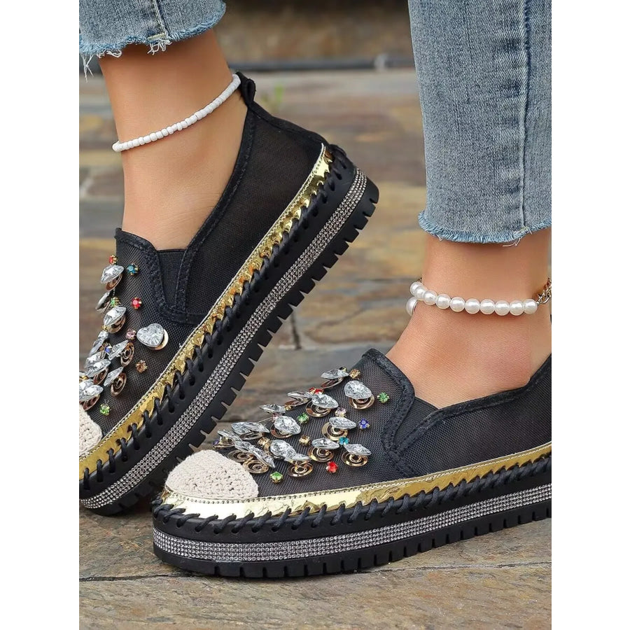Rhinestone Embellished Platform Loafers