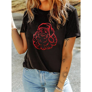 Rhinestone Santa Claus Christmas Graphic T Shirt
