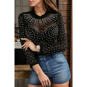 Rhinestone Trim Mock Neck Long Sleeve Bodysuit