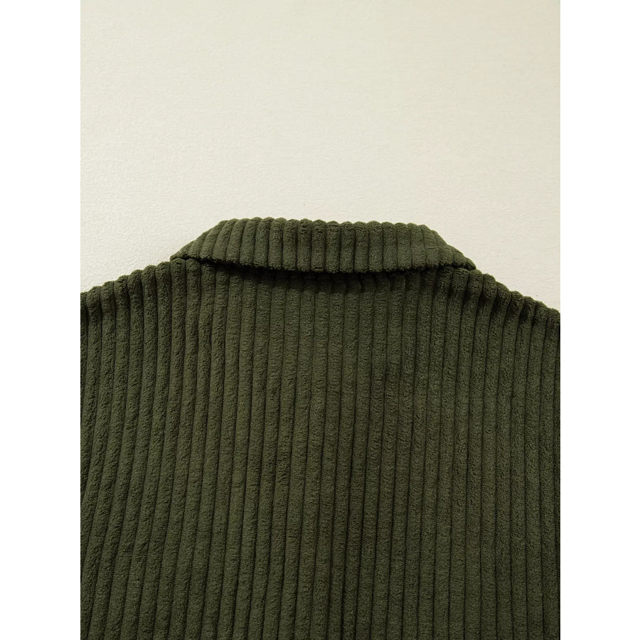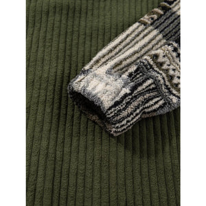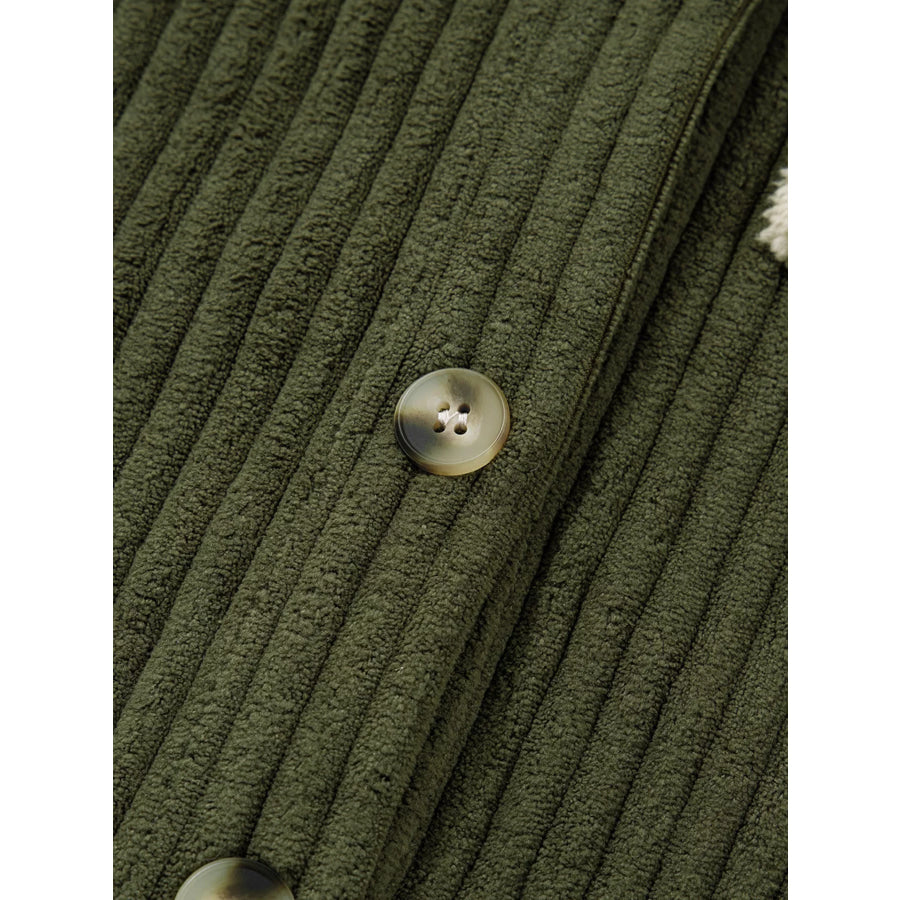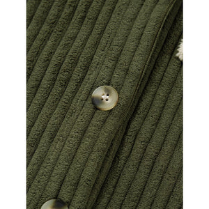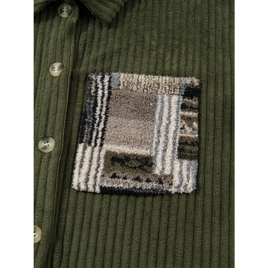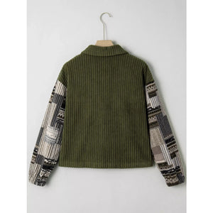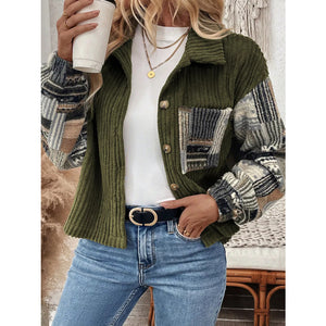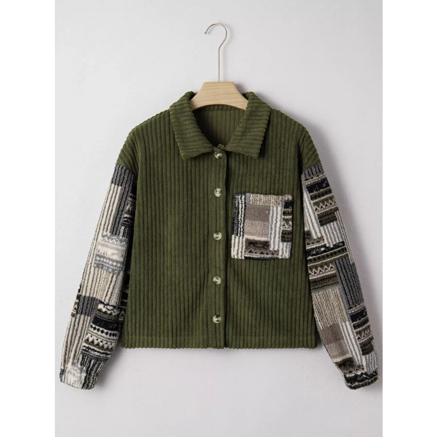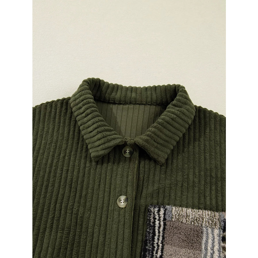 Ribbed Fleece Plaid Print Patchwork Button Up Jacket
