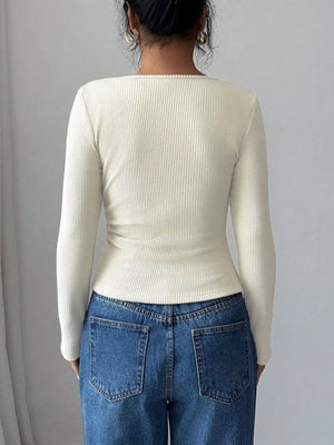 Ribbed Knit Asymmetrical Long Sleeve T-Shirt