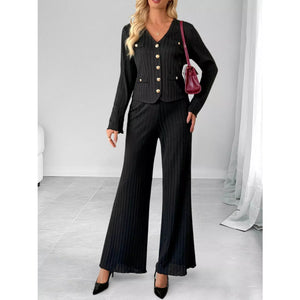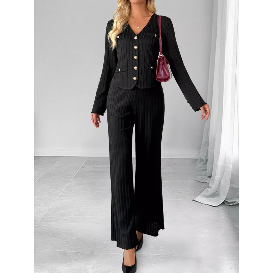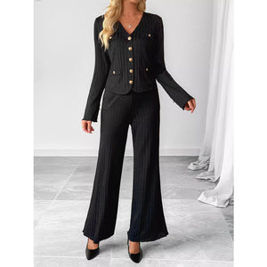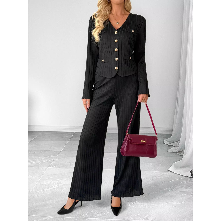 Ribbed Knit Cardigan & Wide Leg Pants Set