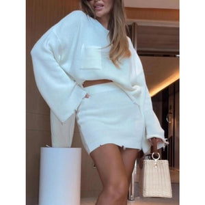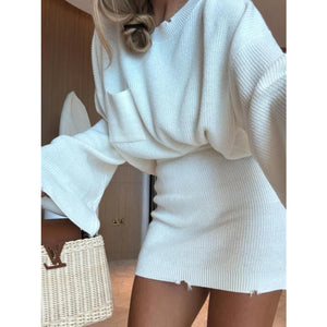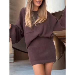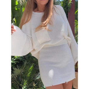Ribbed Knit Long Sleeve Top and Skirt Sweater Set