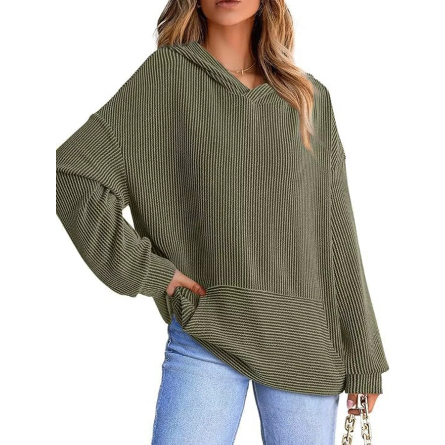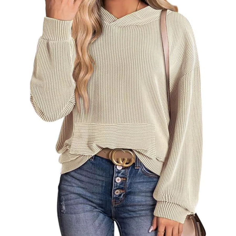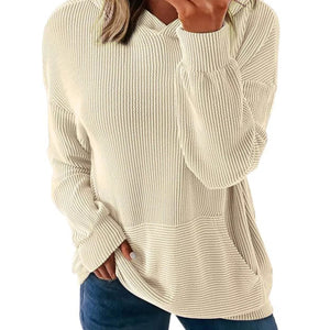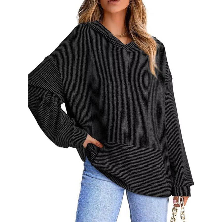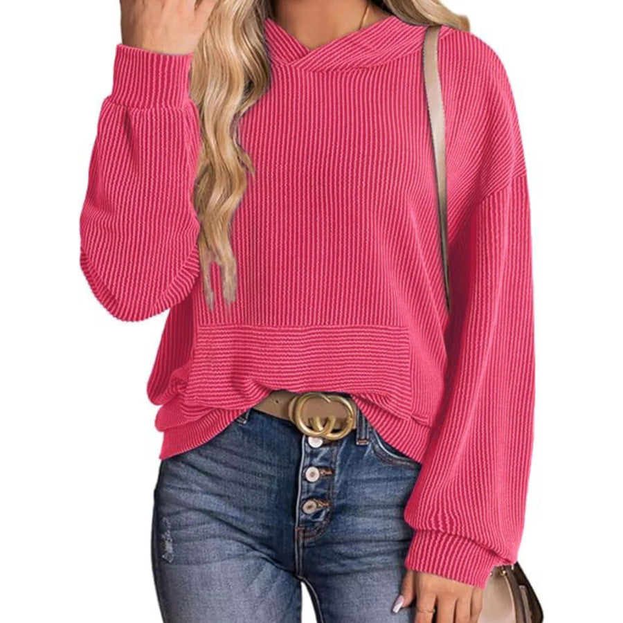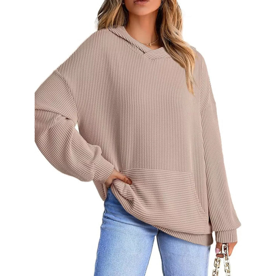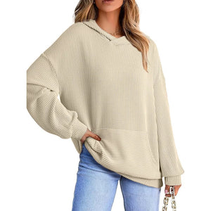 Ribbed Oversized Hoodie Sweatshirt with Pocket