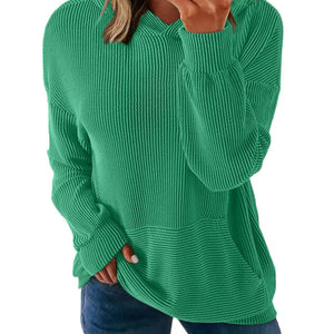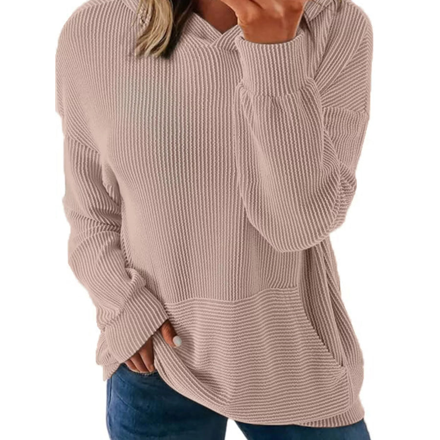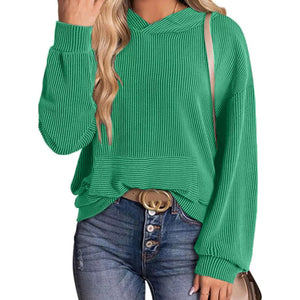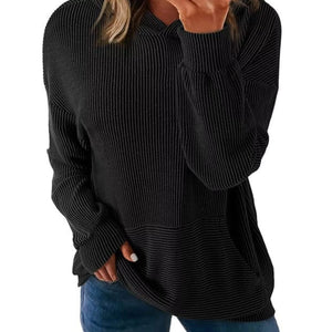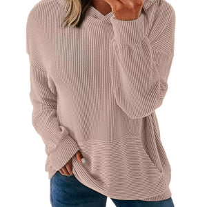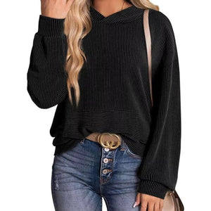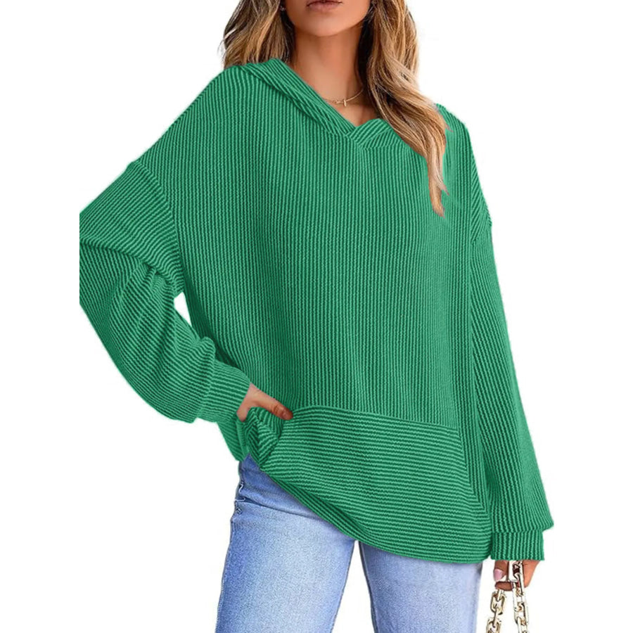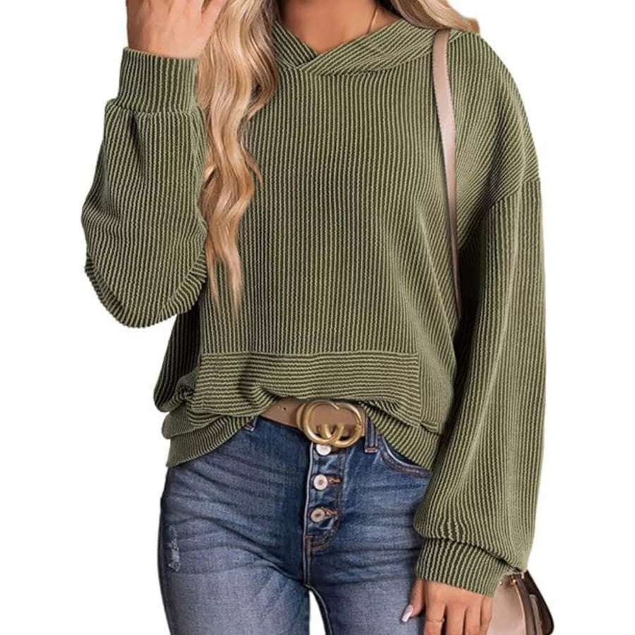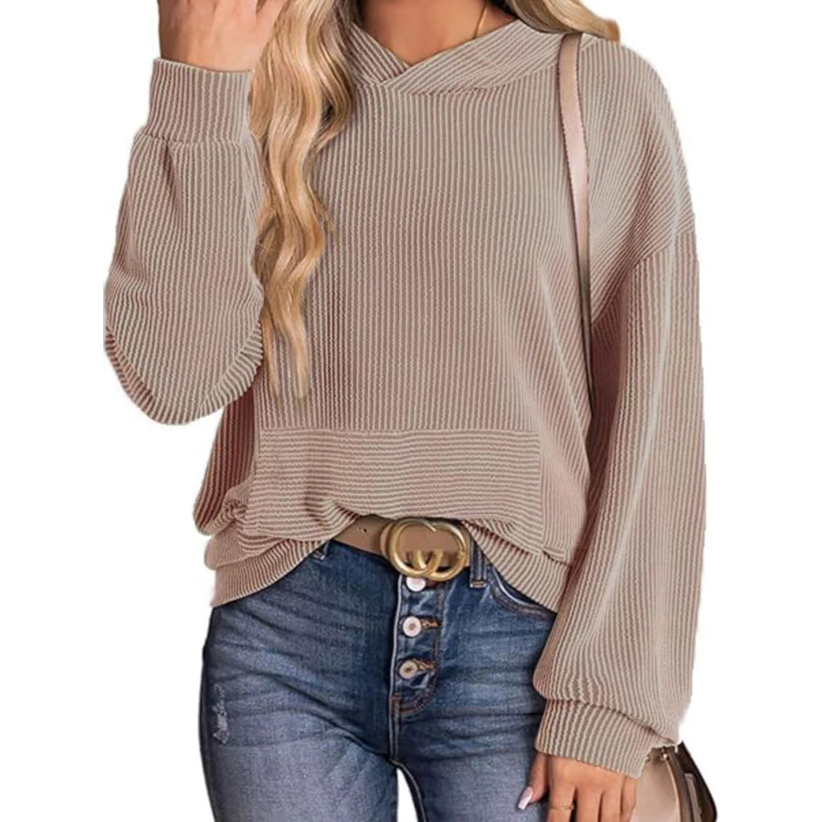 Ribbed Oversized Hoodie Sweatshirt with Pocket