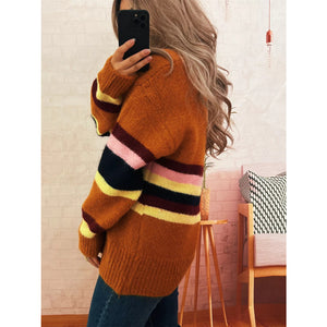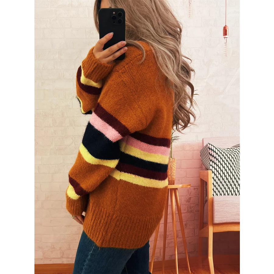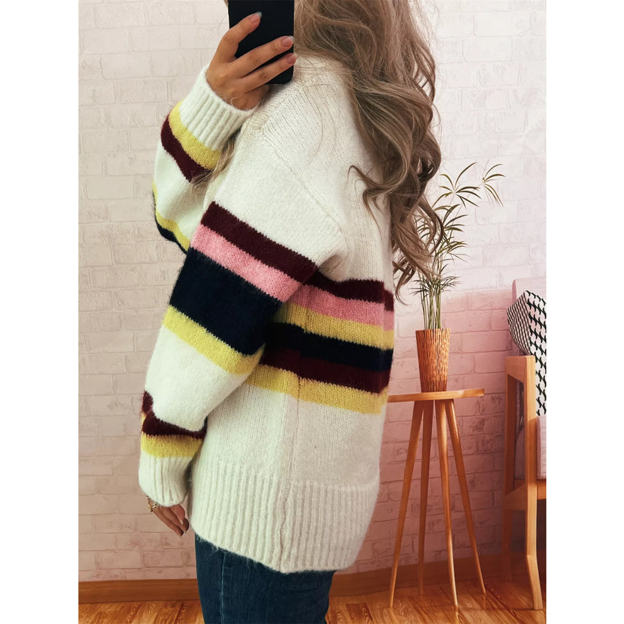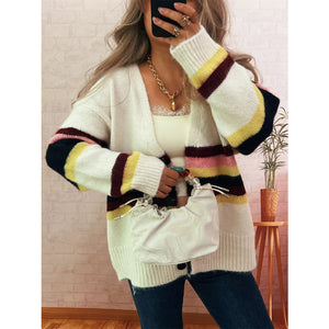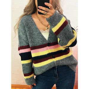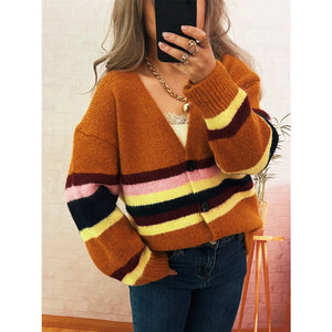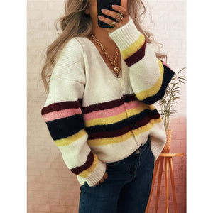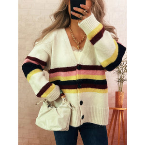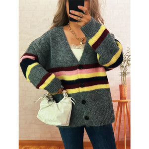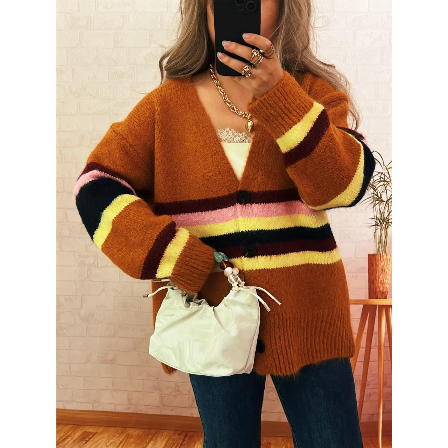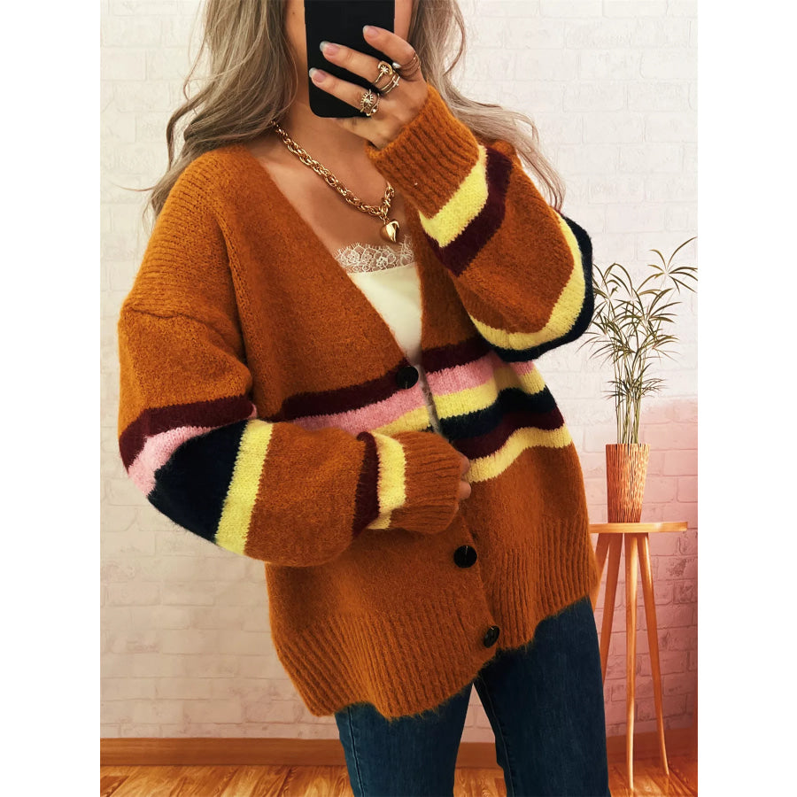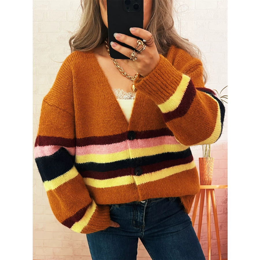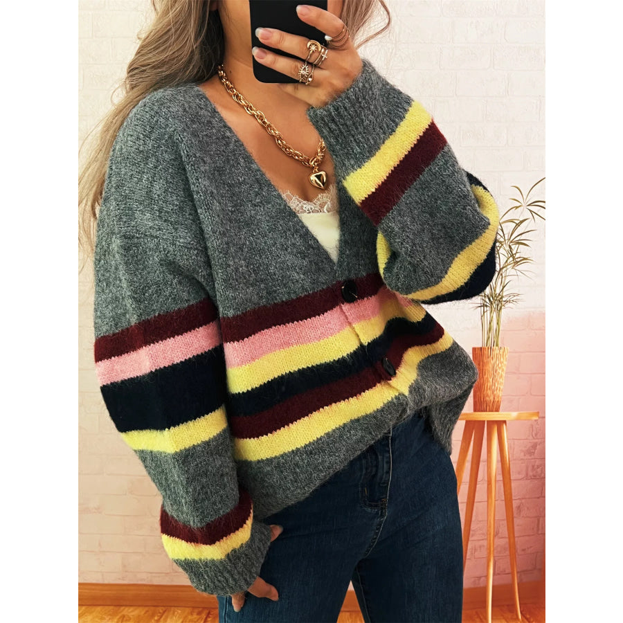 Ribbed Striped Button Down Cardigan