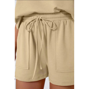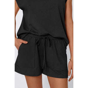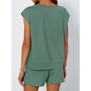 Round Neck Cap Sleeve Top and Shorts Set