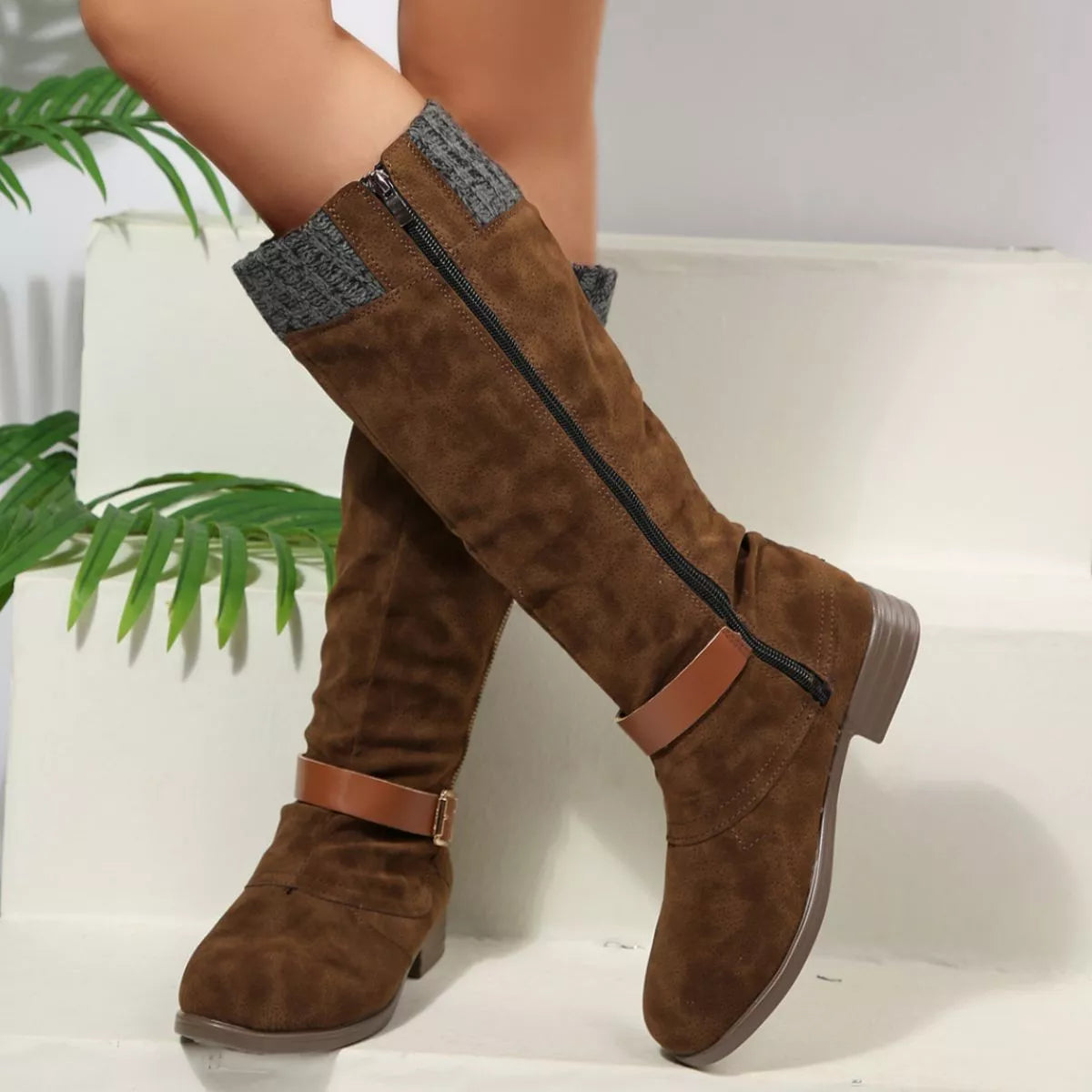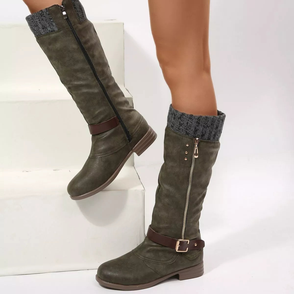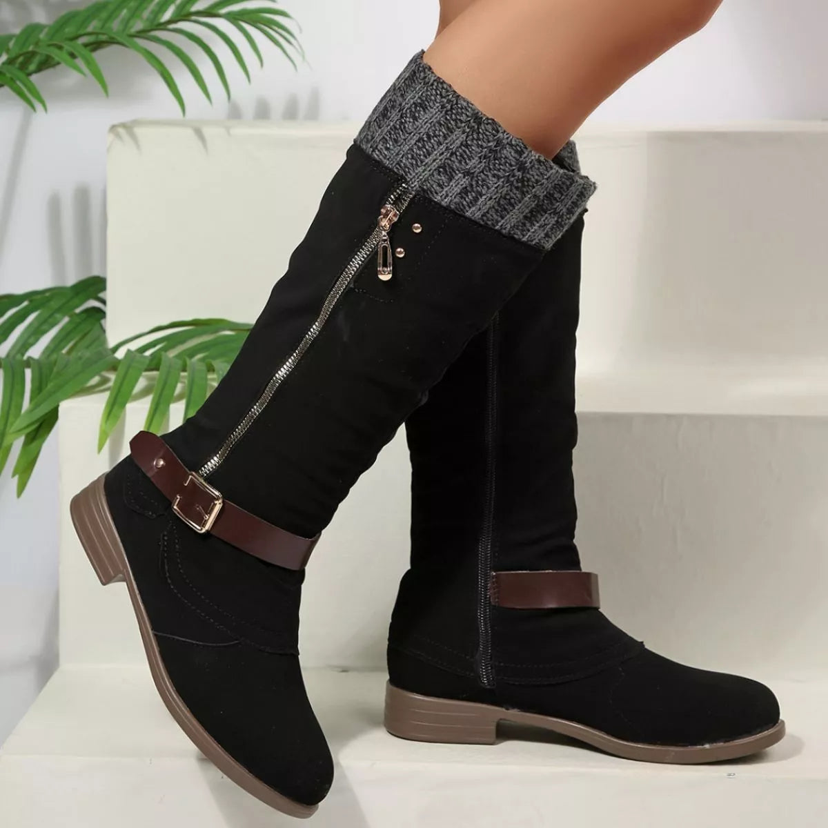Round Toe Block Heels Boots