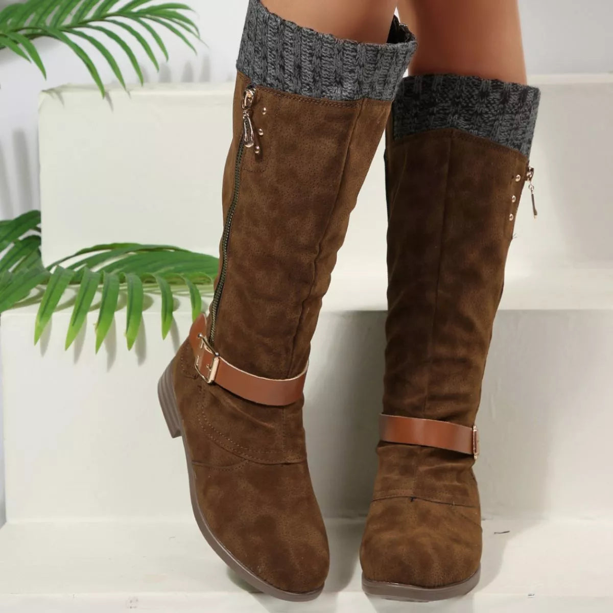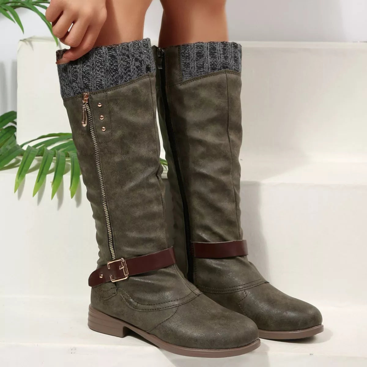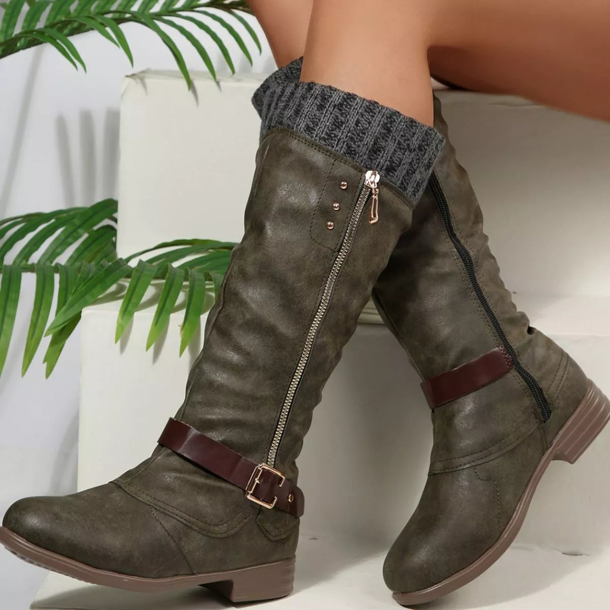 Round Toe Block Heels Boots