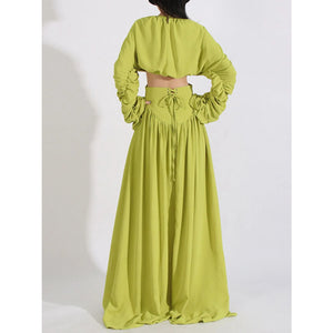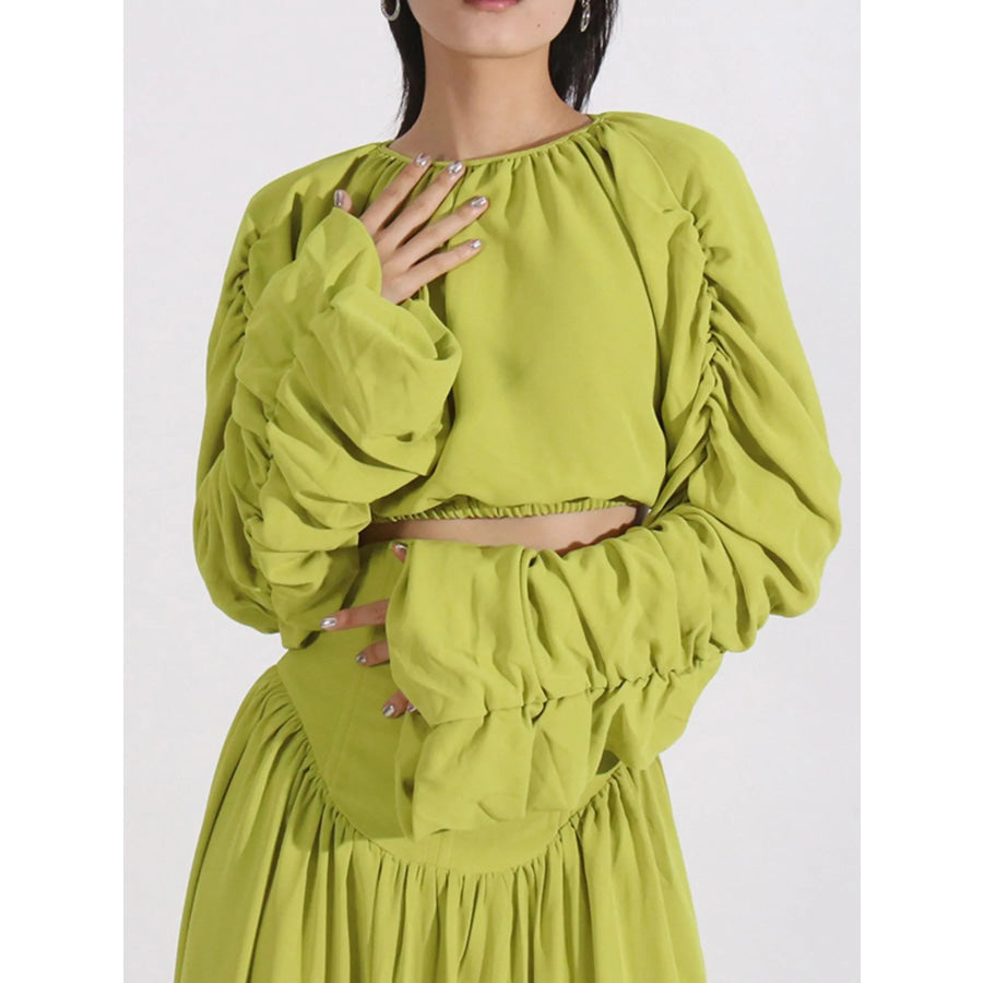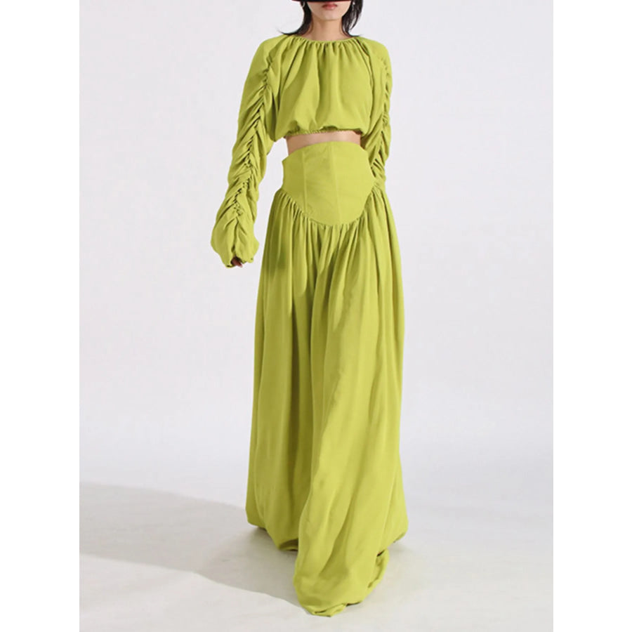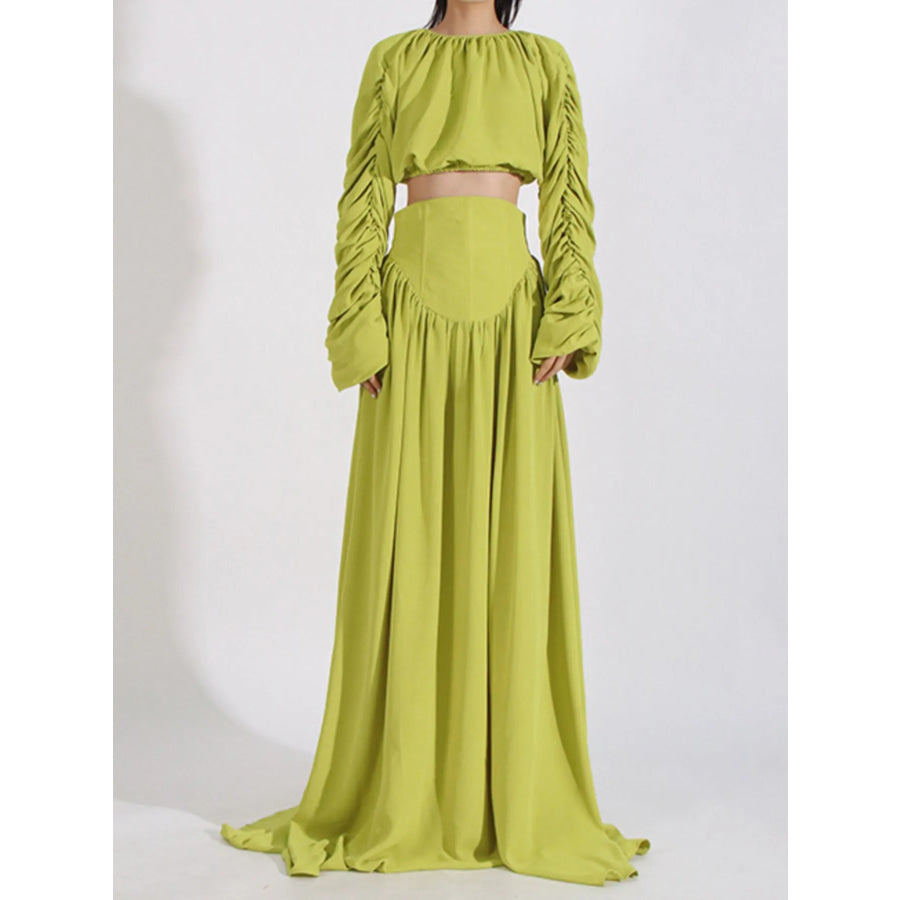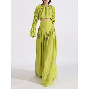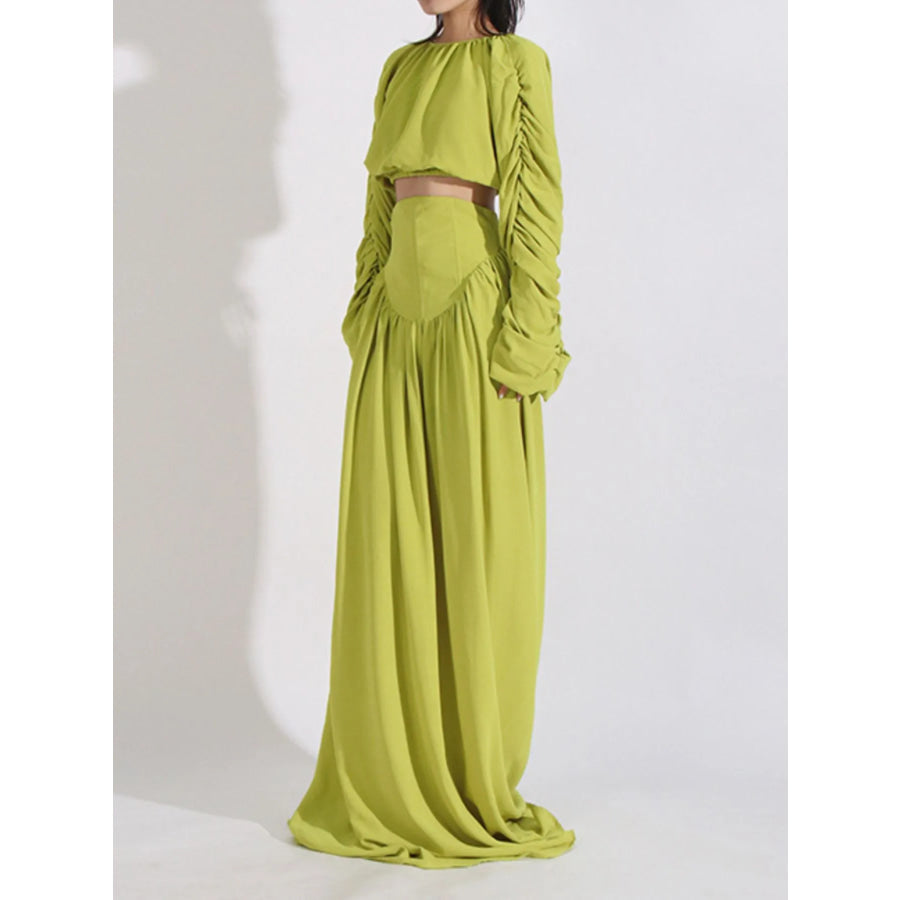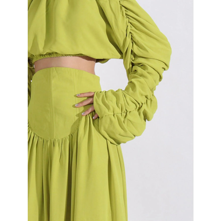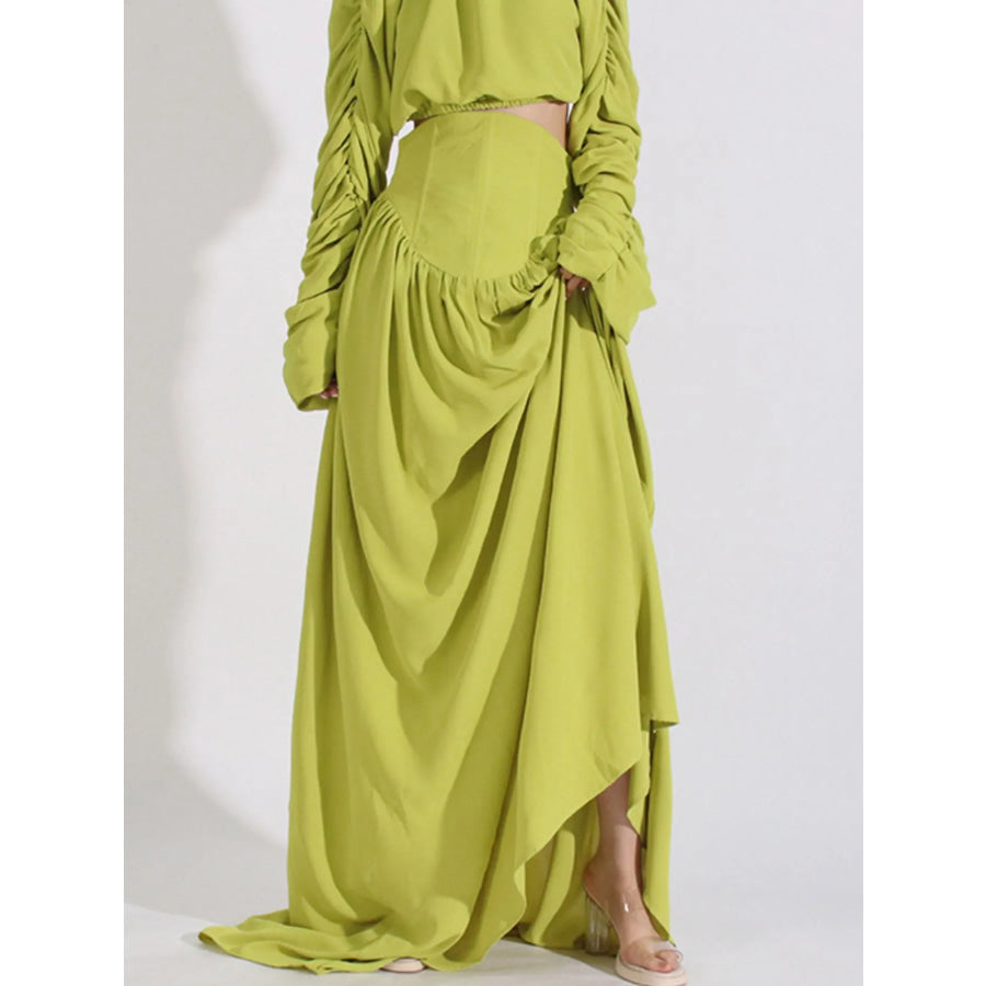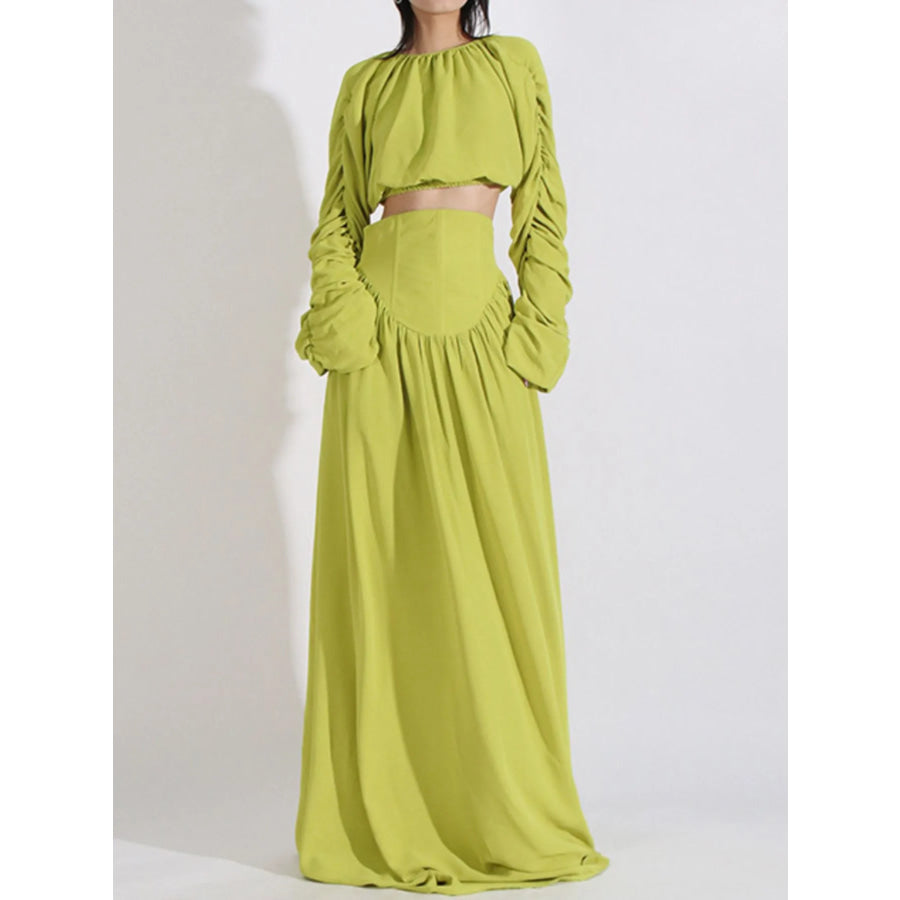 Ruched Long Sleeve Top and High Waist Skirt Set