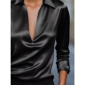 Satin Johnny Collar Long Sleeve Blouse