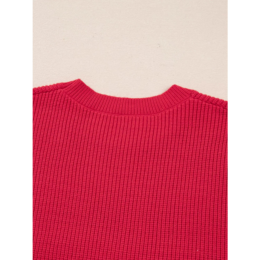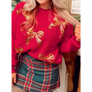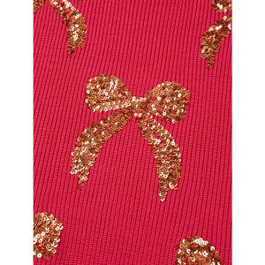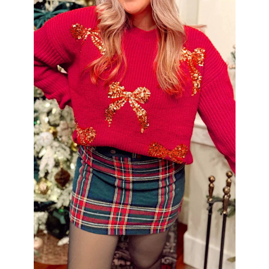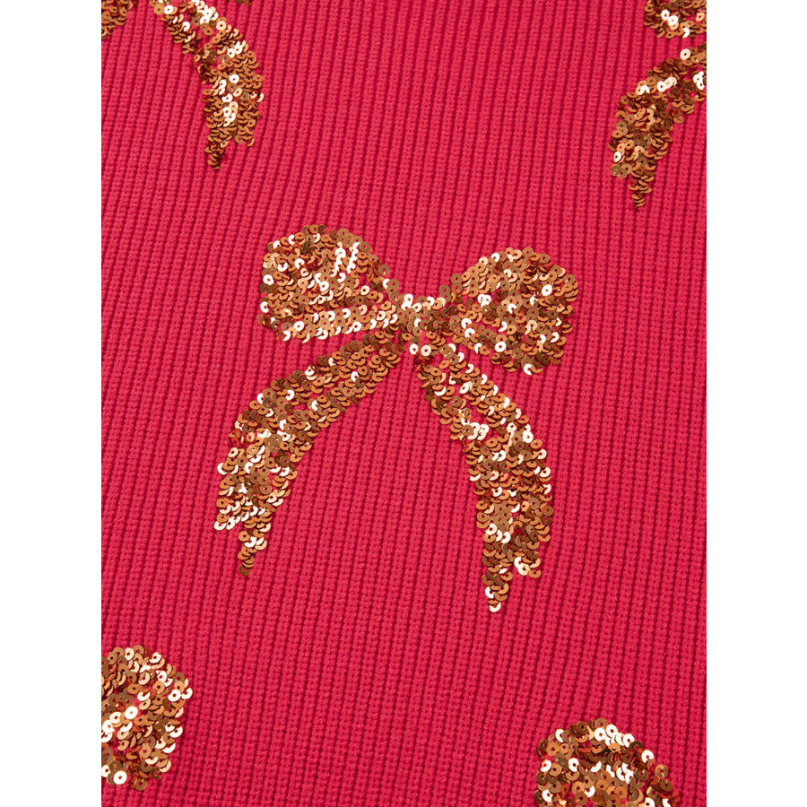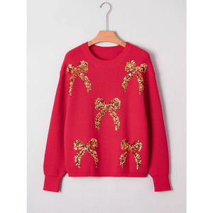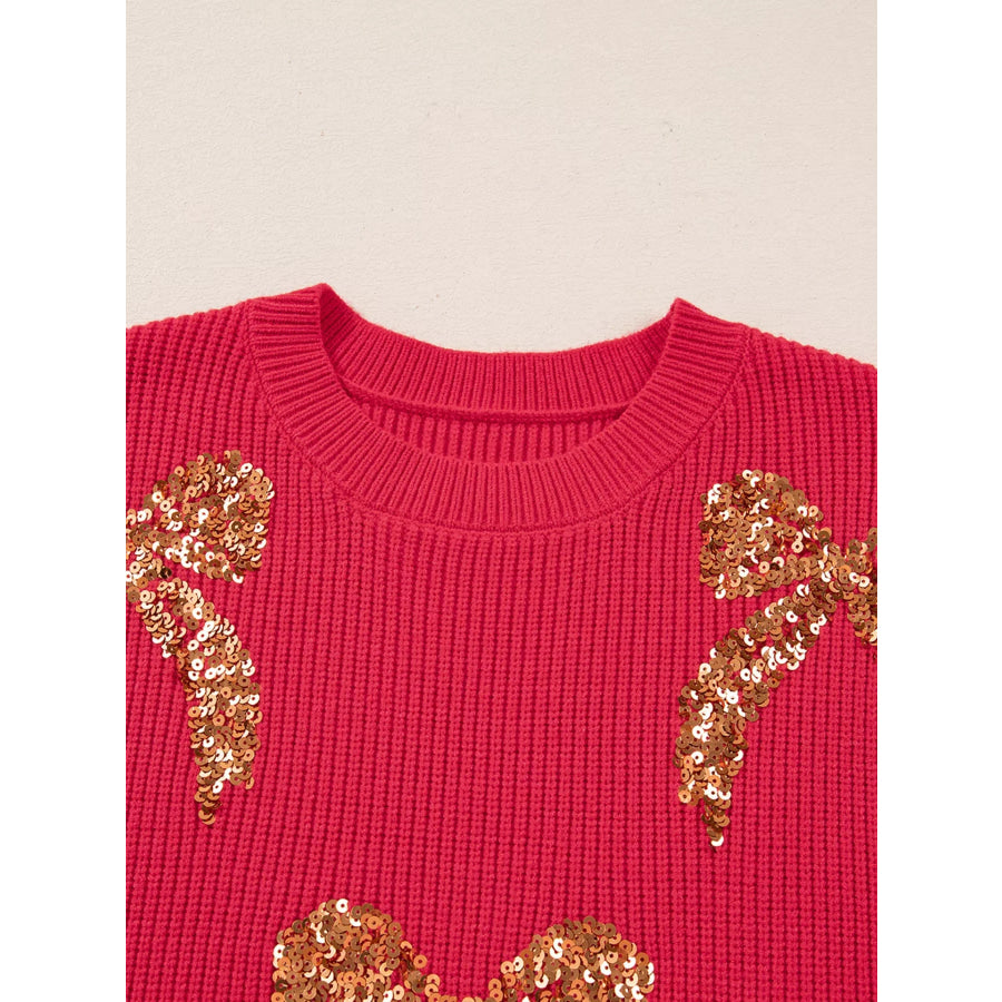 Sequin Bow Accent Drop Shoulder Sweater