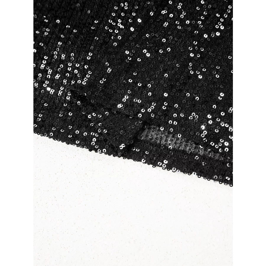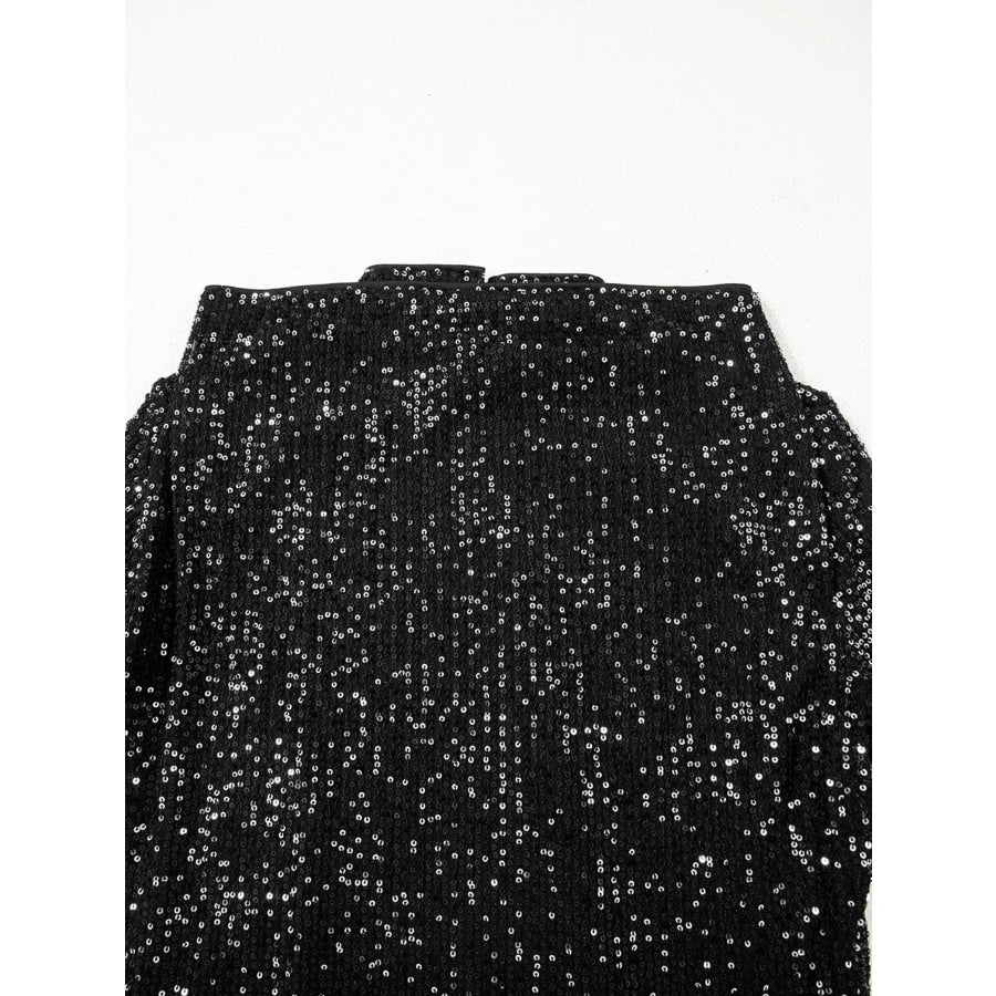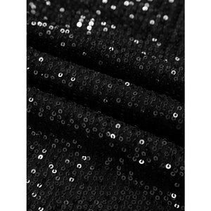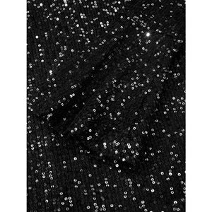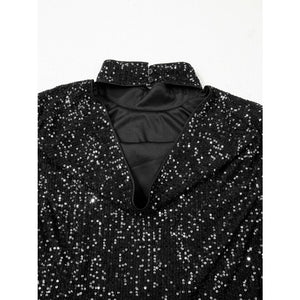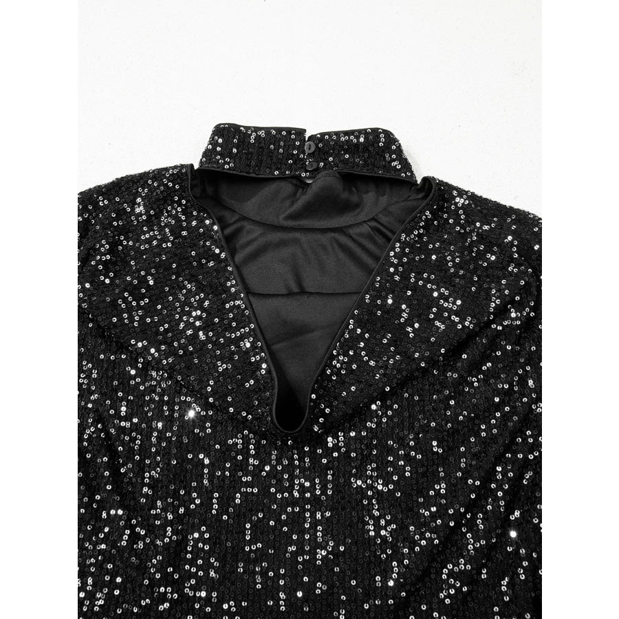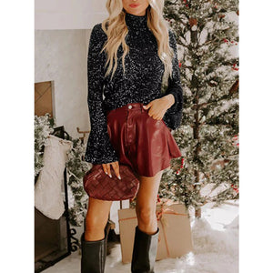 Sequin Mock Neck Drape Open Back Bell Sleeve Top