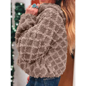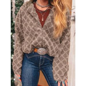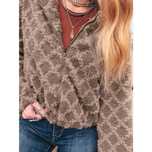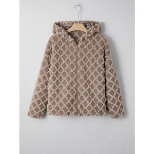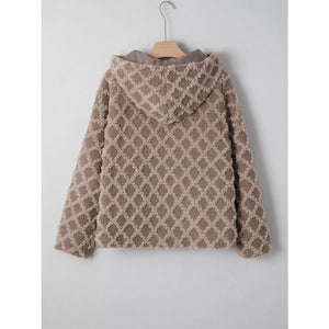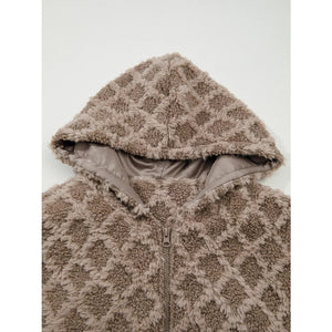 Sherpa Rhombus Zip Up Side Pocket Hooded Jacket