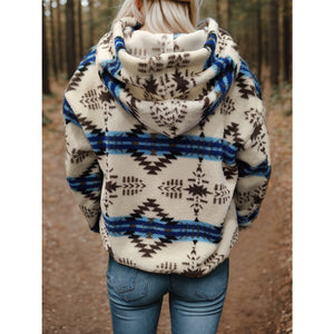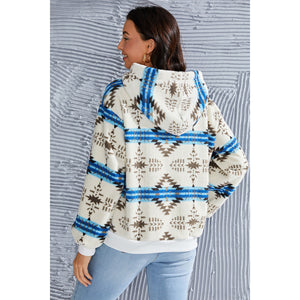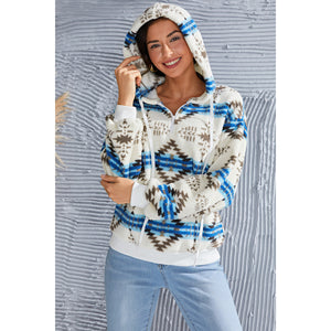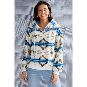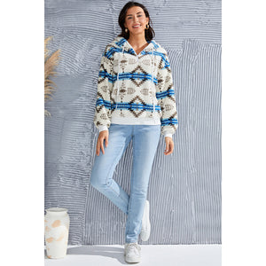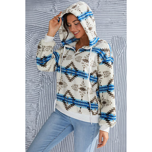 Shiny Geometric Half Zip Drawstring Long Sleeve Hoodie
