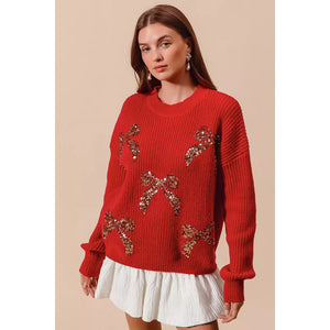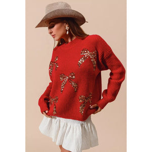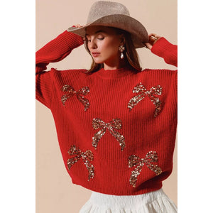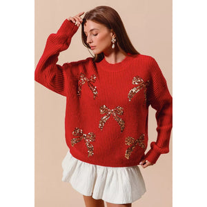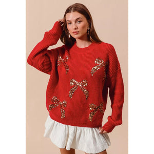 Sparkle and shine in style with this All Over Ribbon Sequins Christmas Holiday Sweater. The all-over ribbon sequins design adds a festive and glamorous touch to this sweater, perfect for holiday celebrations. Made from high-quality materials, this sweater is comfortable and eye-catching. Whether you're dressing up for a holiday party or staying cozy at home, this sweater is a stylish choice. Pair it with leggings or a skirt for a festive and fashionable outfit that will get you into the holiday spirit.
