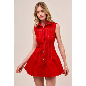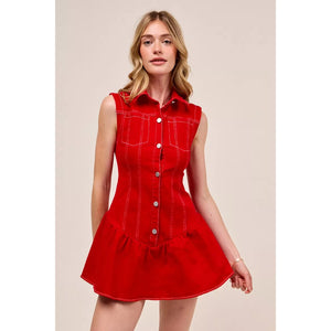 SO ME Button Down Sleeveless Collared Game Day Mini Dress