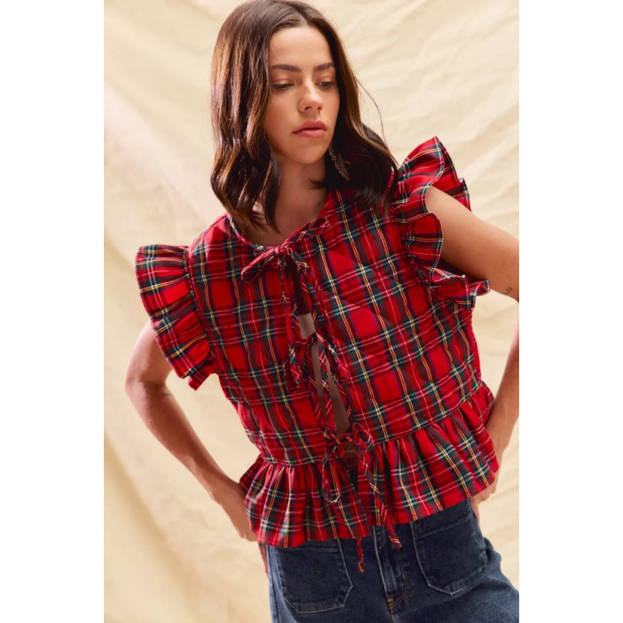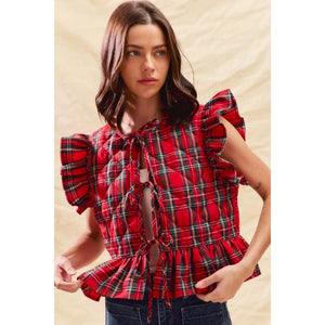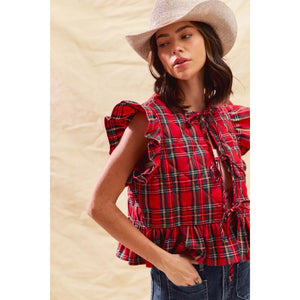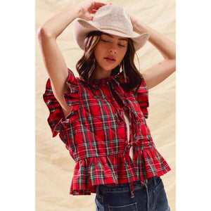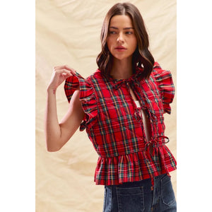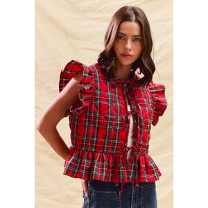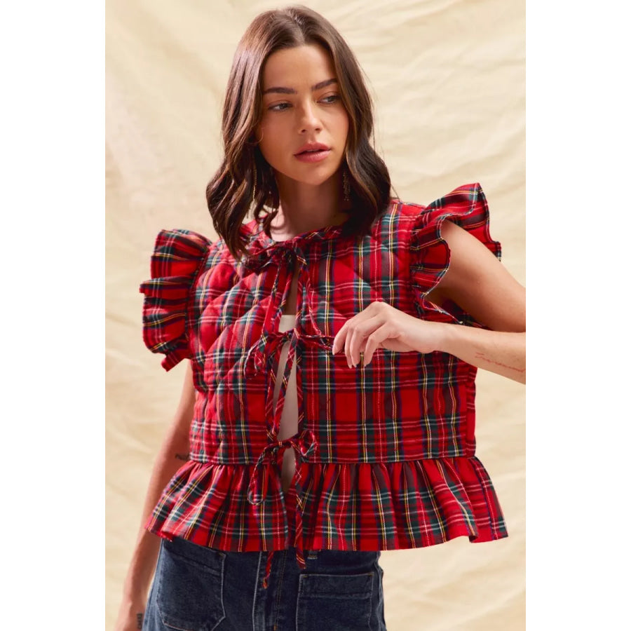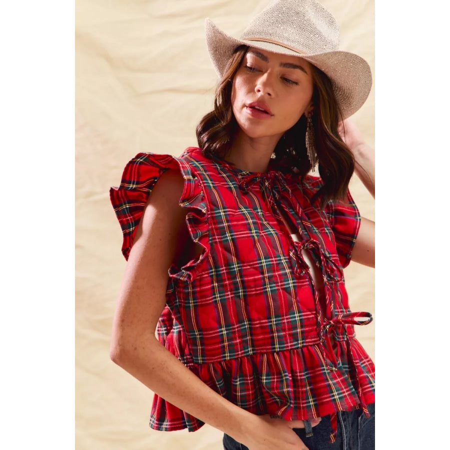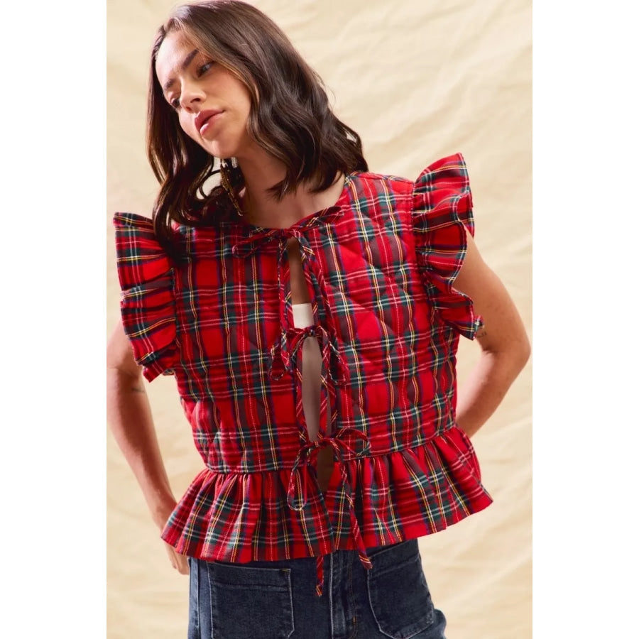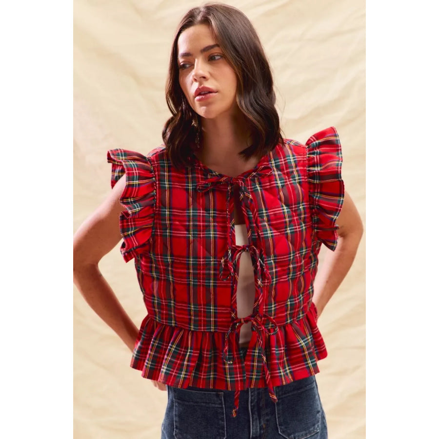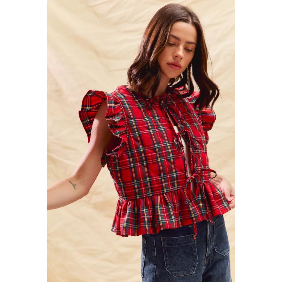 SO ME Christmas Holiday Plaid Ruffled Quilt Vest Top