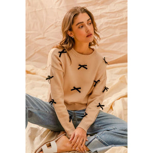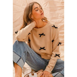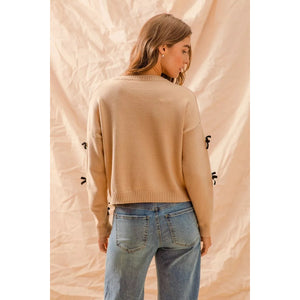 The ribbon bow applique sweater is a charming and feminine addition to your knitwear collection. The ribbon bow detail adds a sweet and playful touch to the sweater. Perfect for adding a touch of elegance to your winter wardrobe, this sweater is both cozy and stylish. Pair it with jeans or a skirt for a lovely and chic look that can easily transition from day to night.