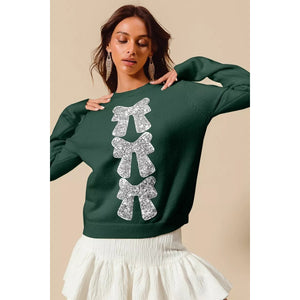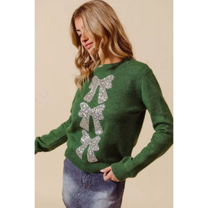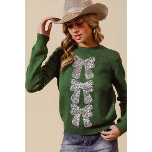 SO ME Sequins Bow Ribbon Embellished Christmas Sweater