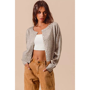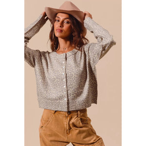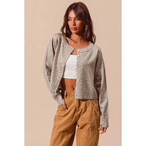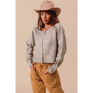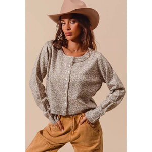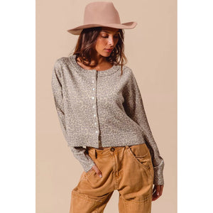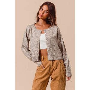 SO ME Two Tone Leopard Vintage Print Button Up Cardigan