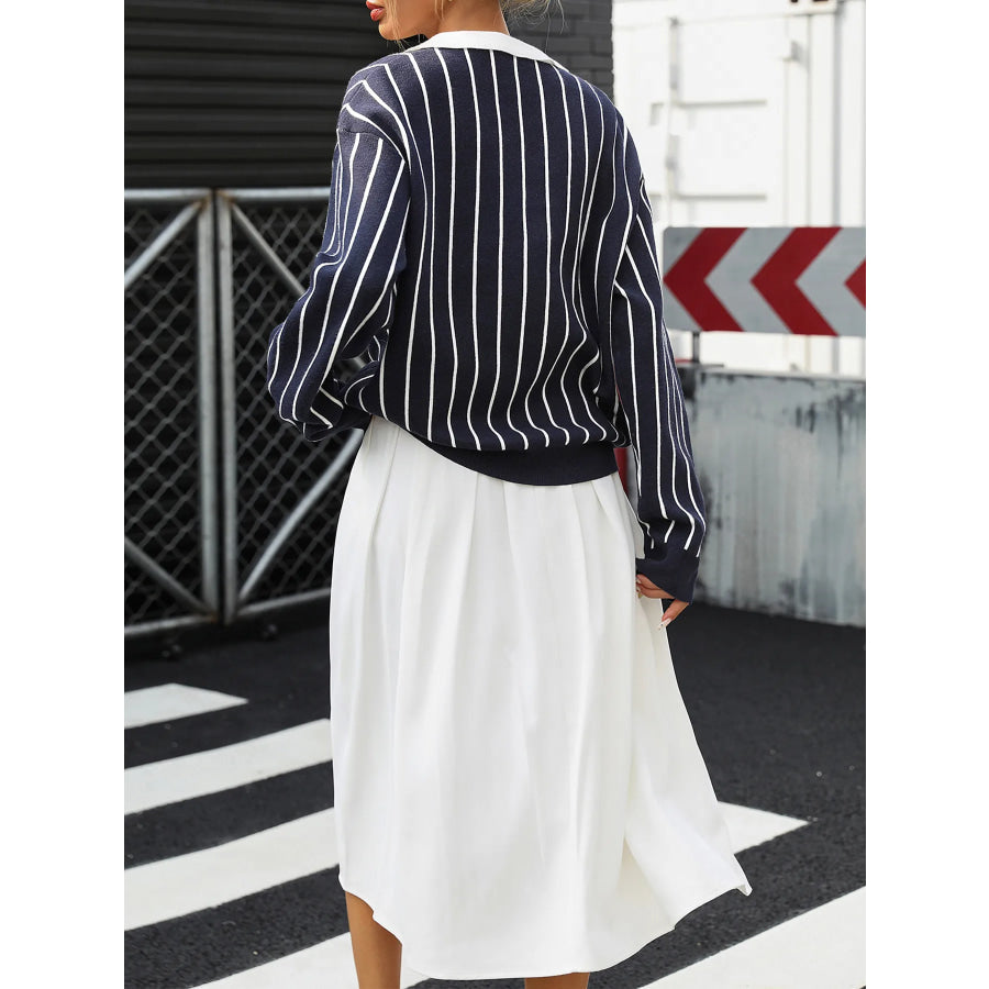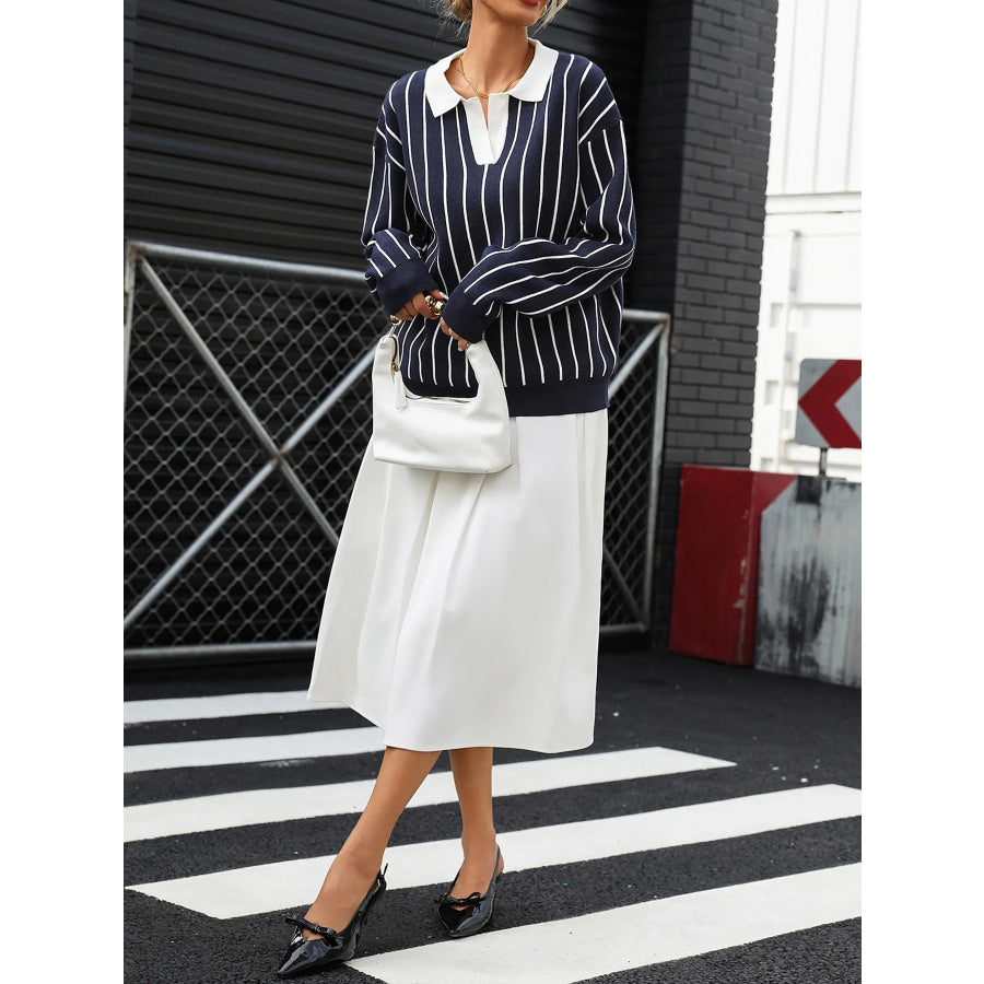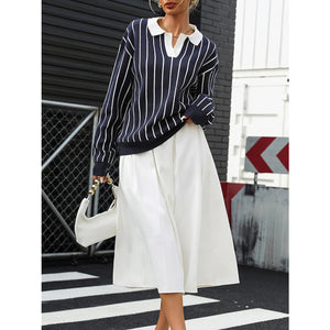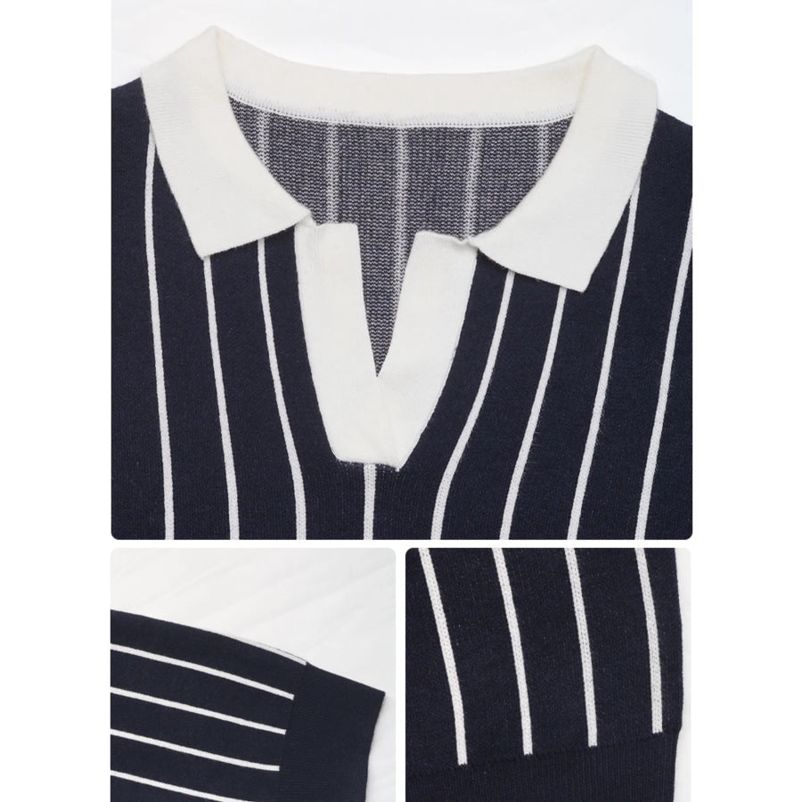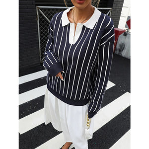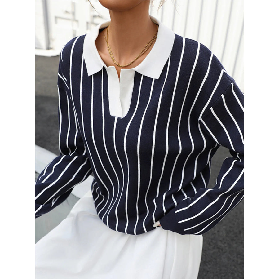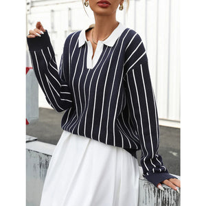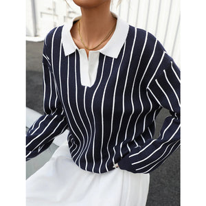 Stripe Contrast Collar Long Sleeve Knit Top