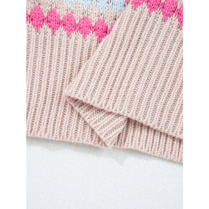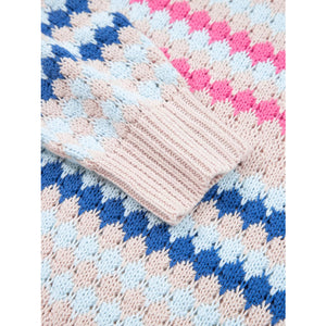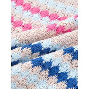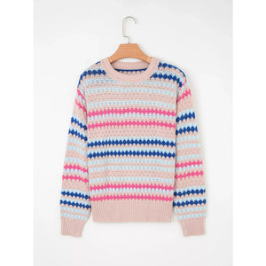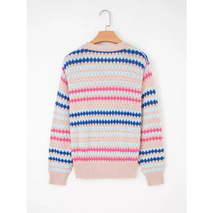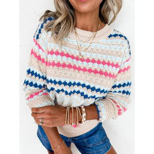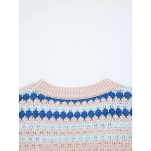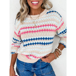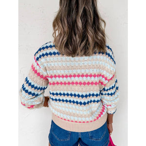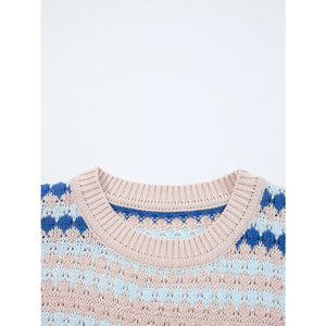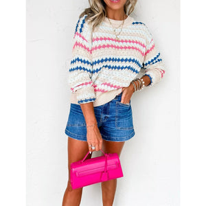 Stripe Eyelet Patterned Drop Shoulder Sweater