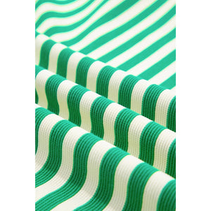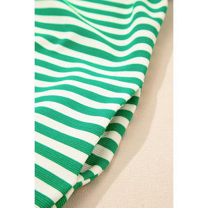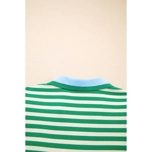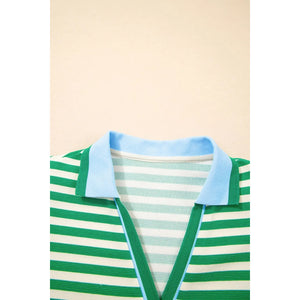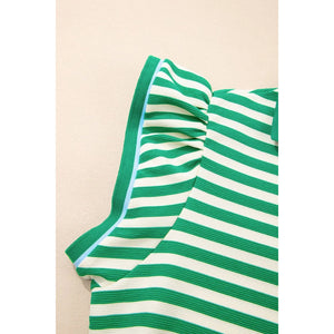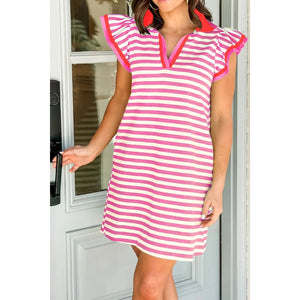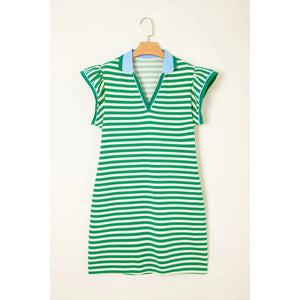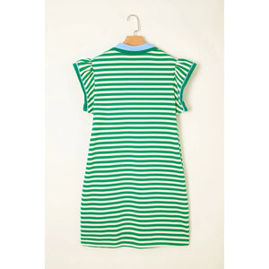 Stripe Print Contrast Collar Split Neck Flutter Sleeve Dress