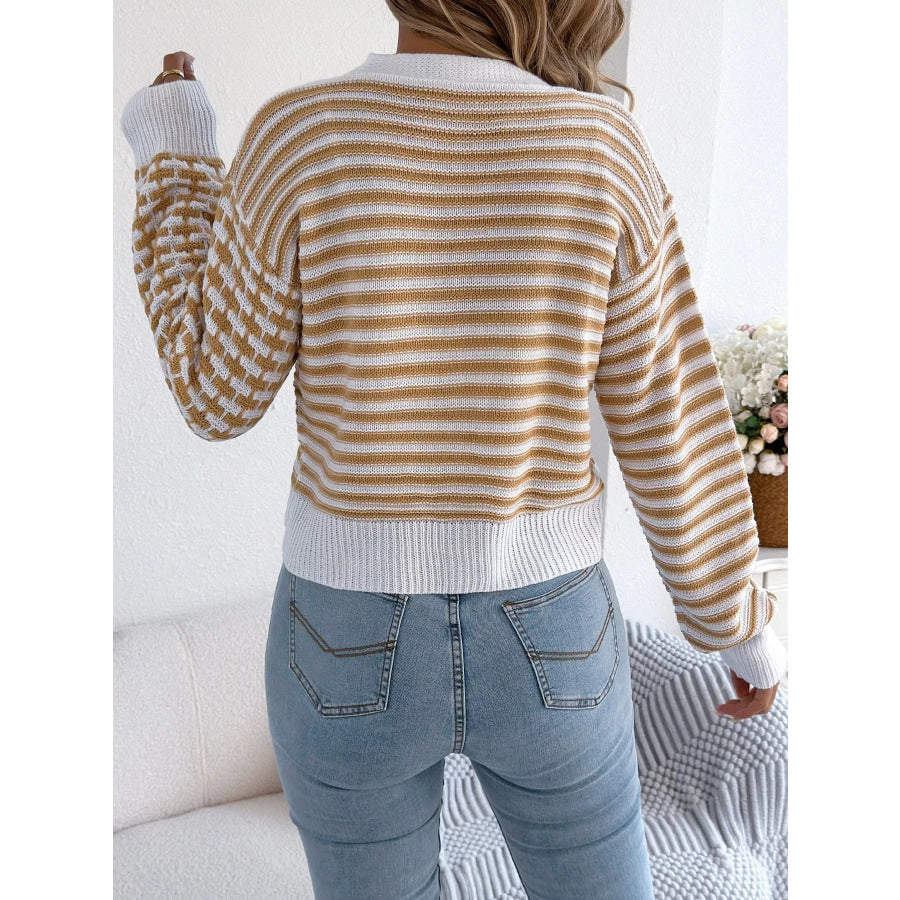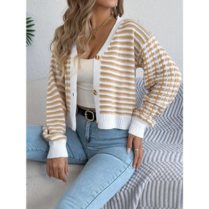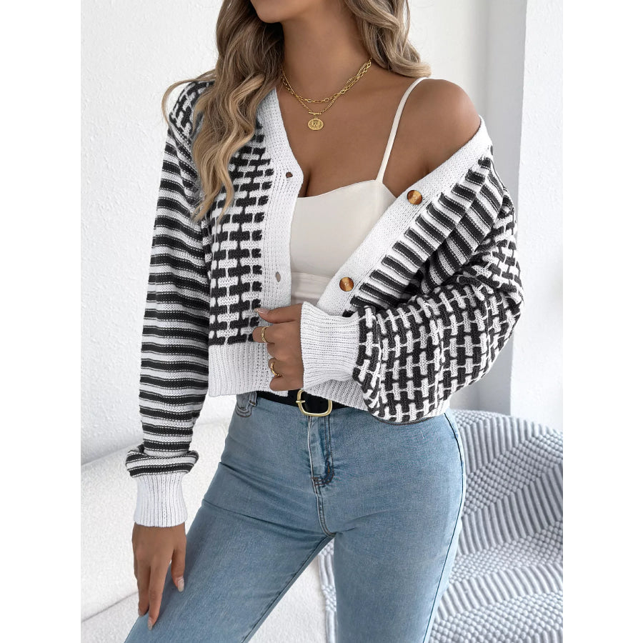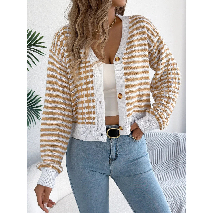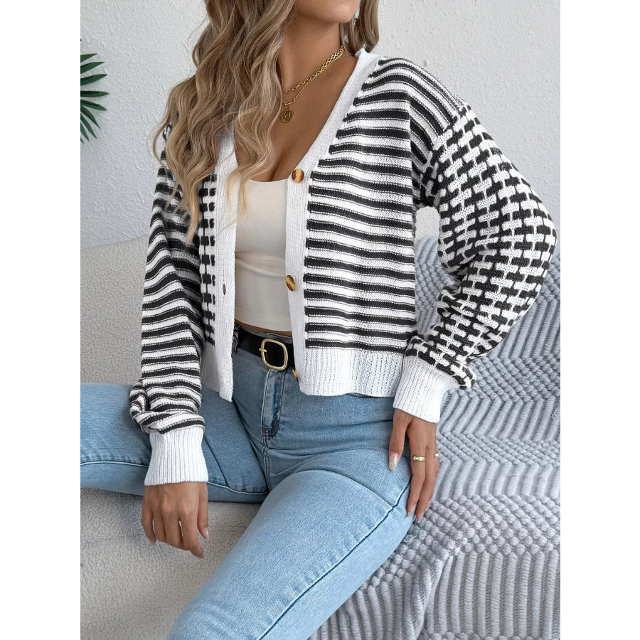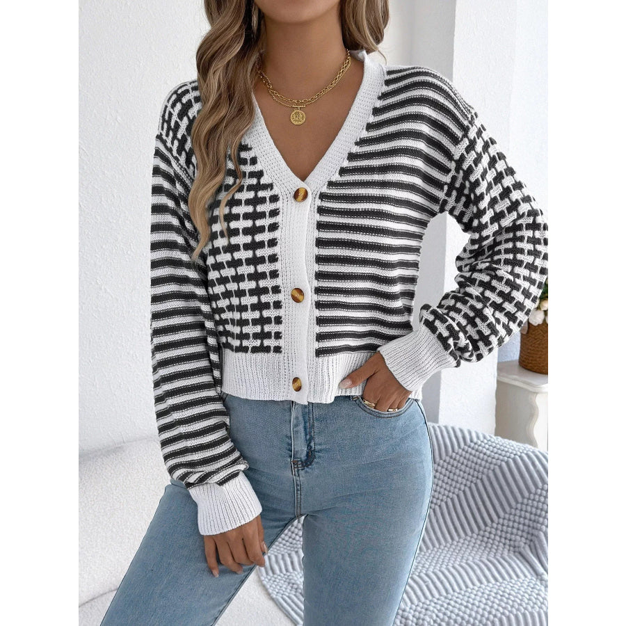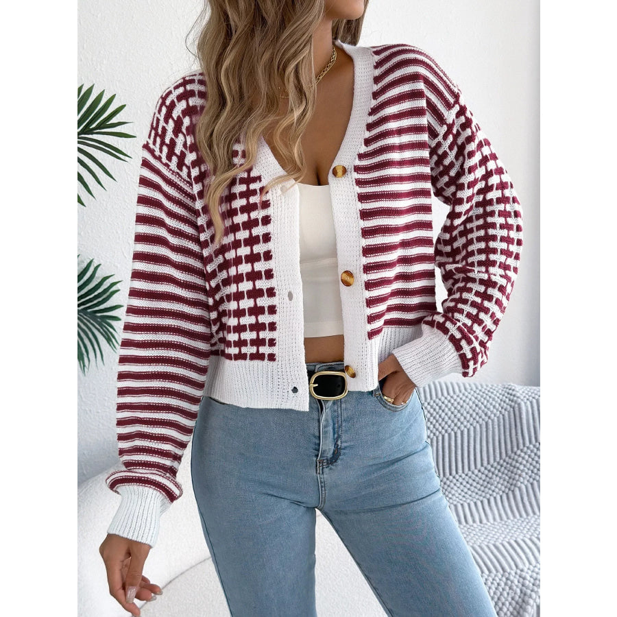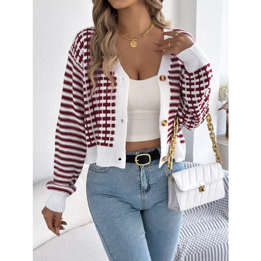 Striped Button-Up Cropped Cardigan