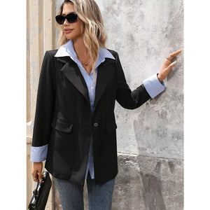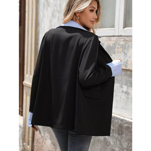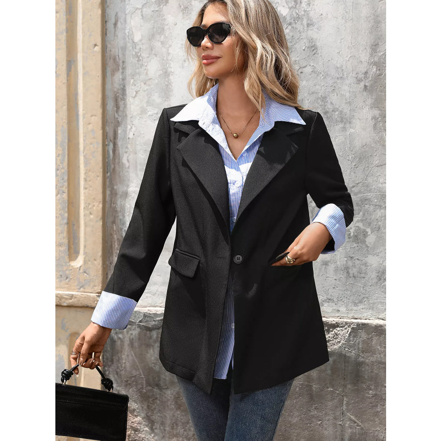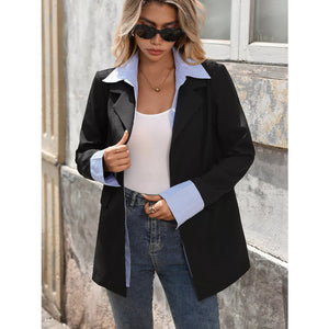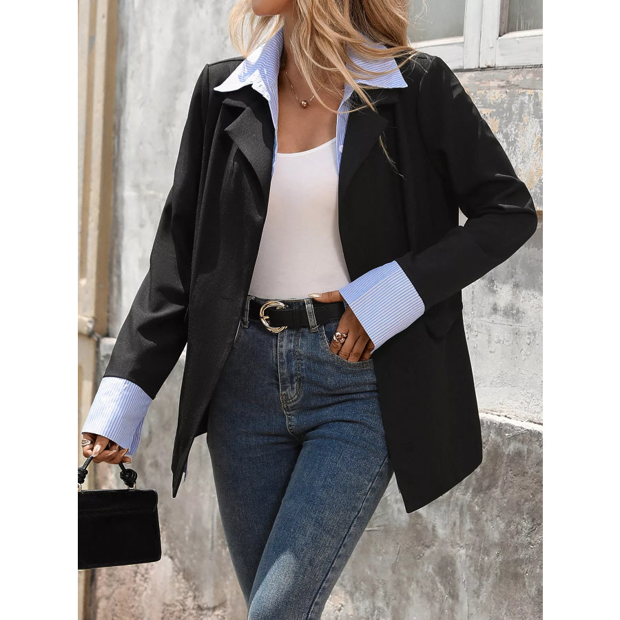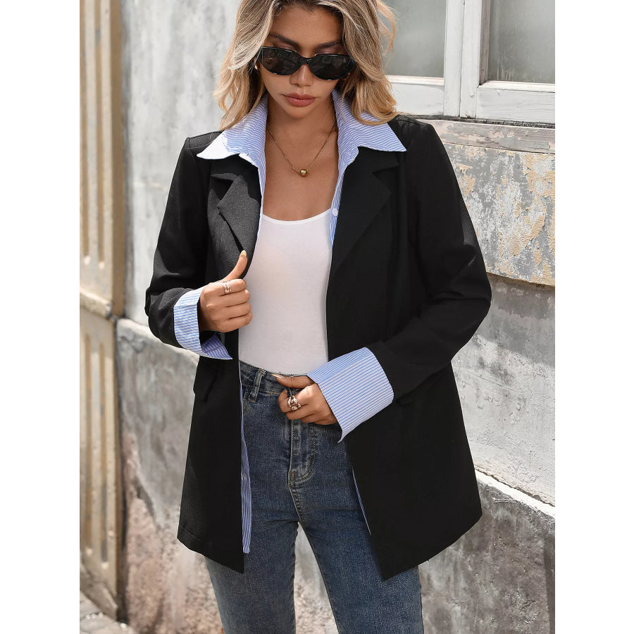 Striped Collar Long Sleeve Fake Two-Piece Blazer