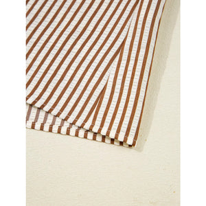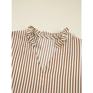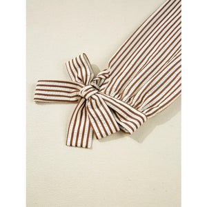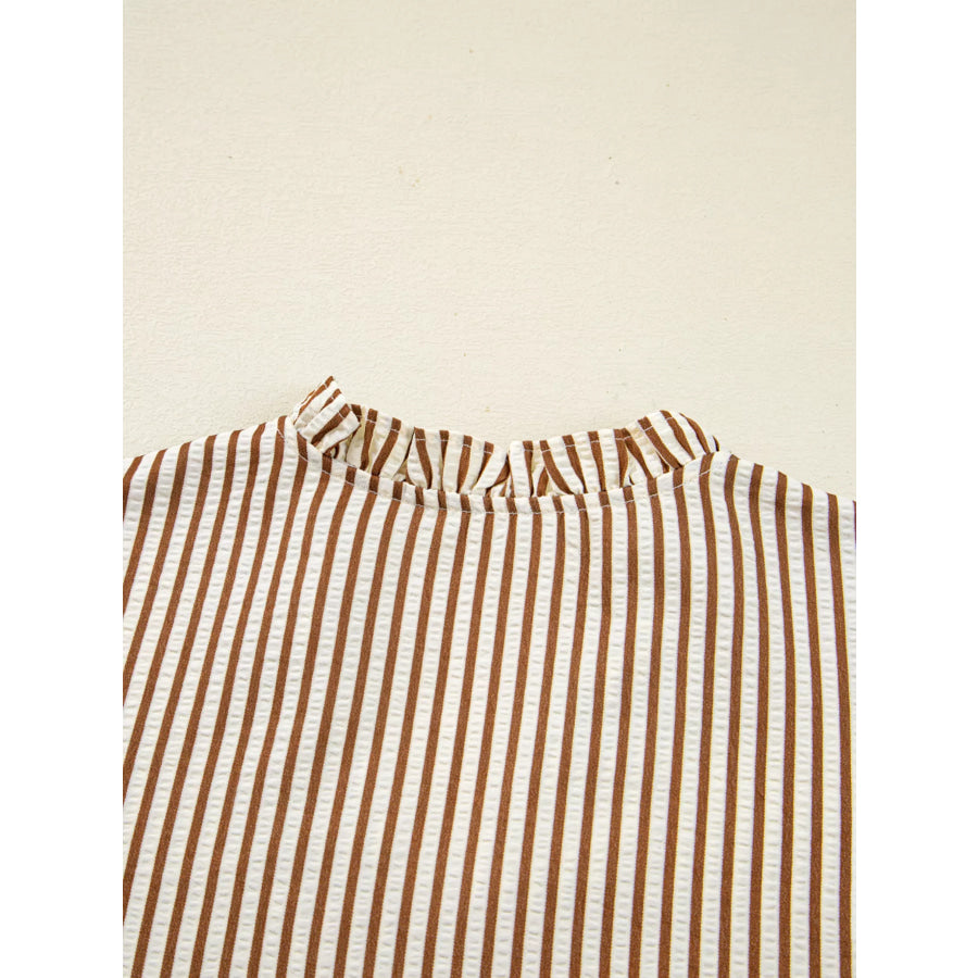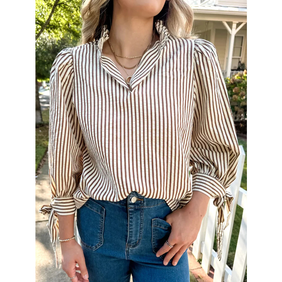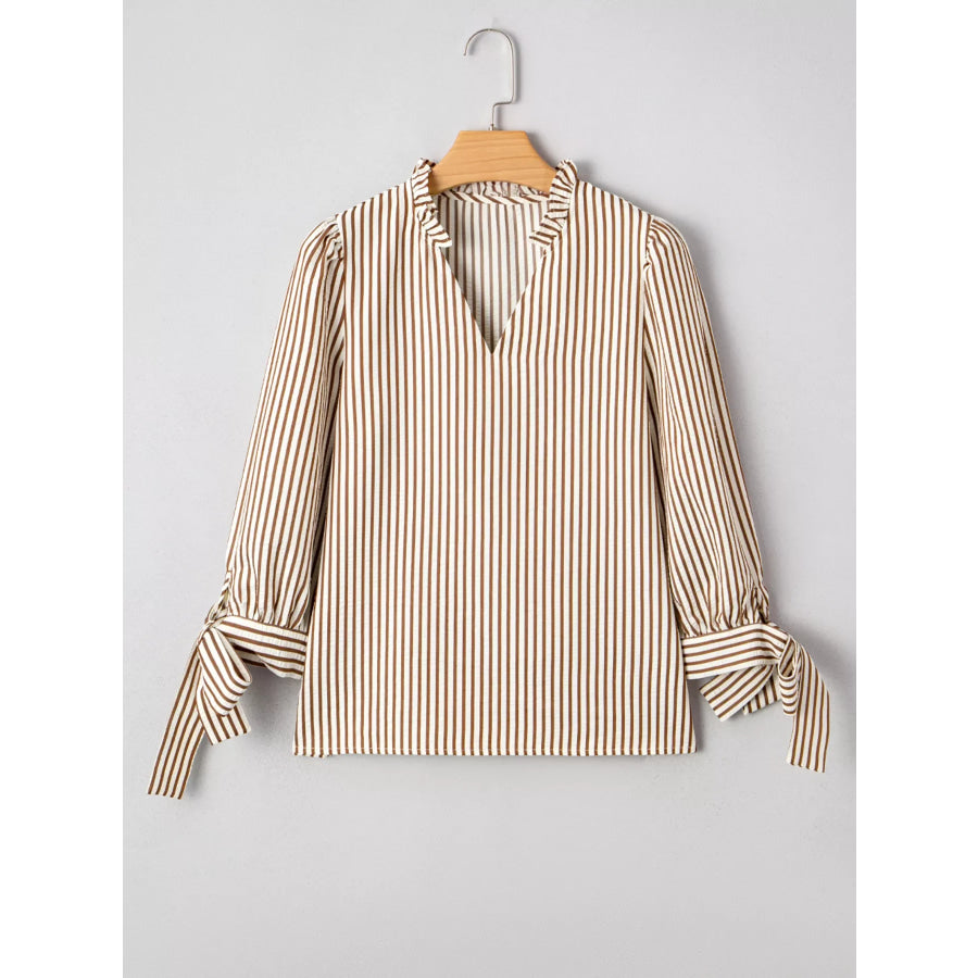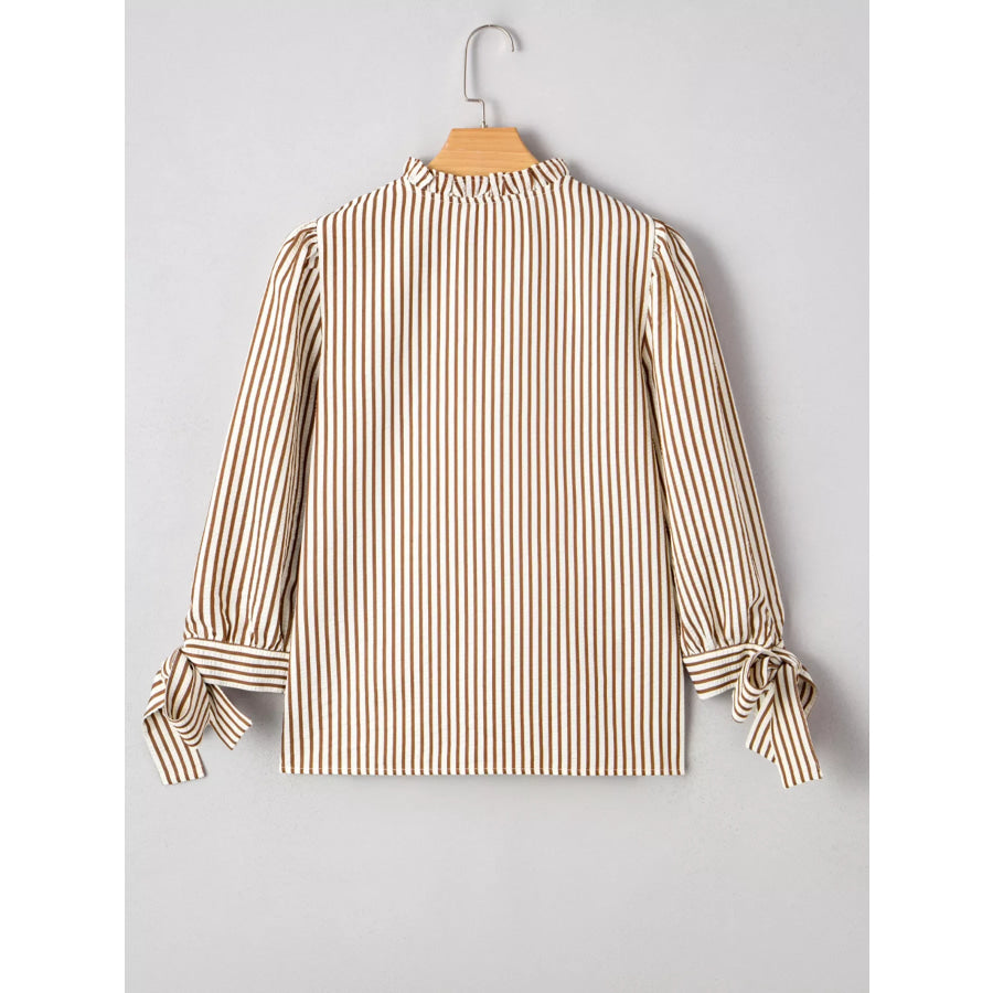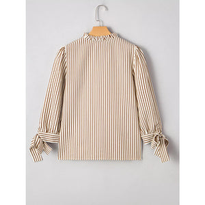 Striped Ruffled Neck Blouse with Tie Sleeves