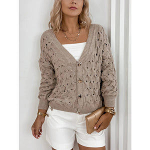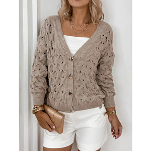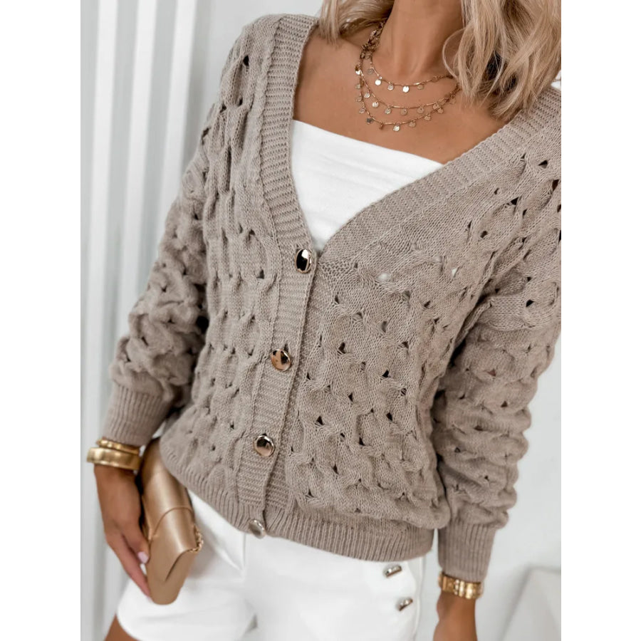 Textured V-Neck Long Sleeve Cardigan