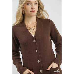 Umgee Button-Down Longline Sweater Cardigan with Front Pockets