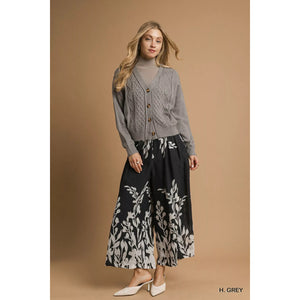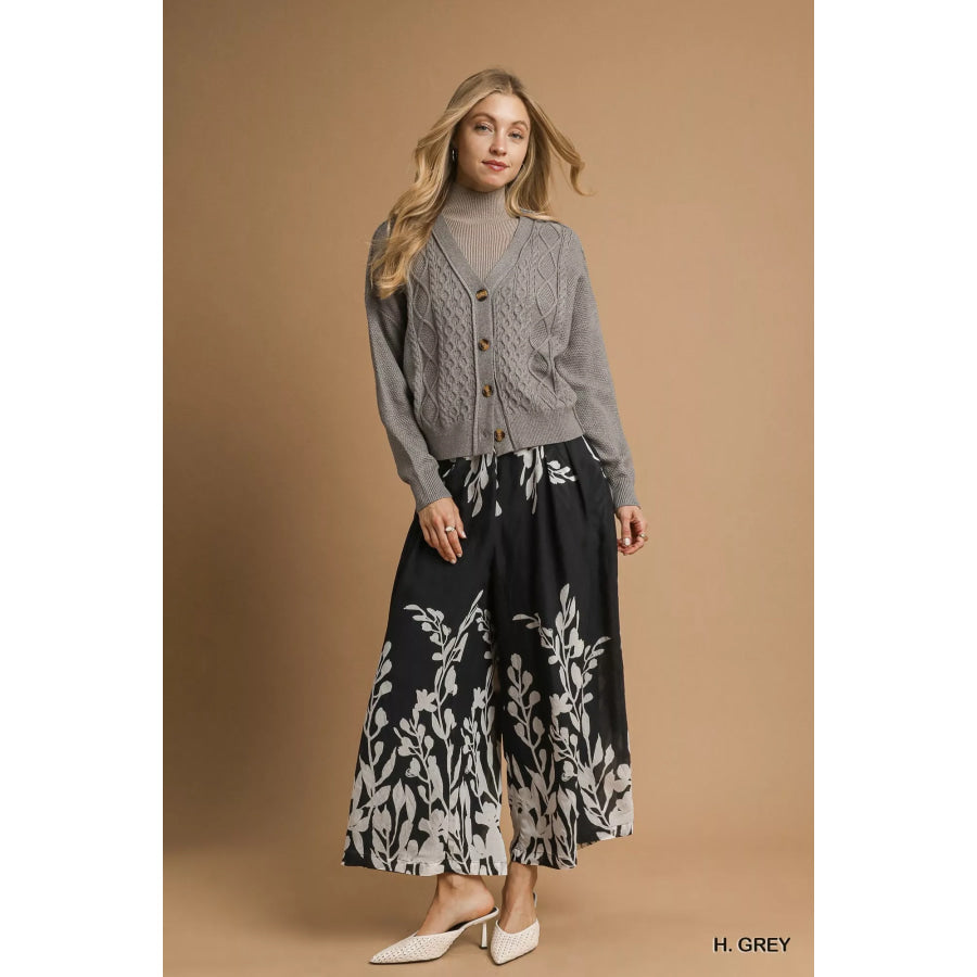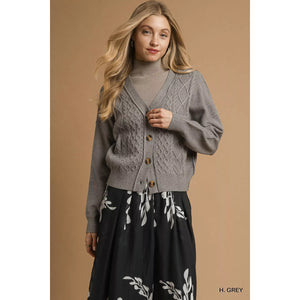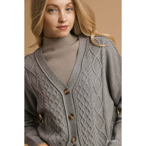 Umgee Chunky Cable Knit V-Neck Button-Up Cardigan