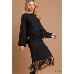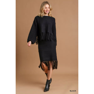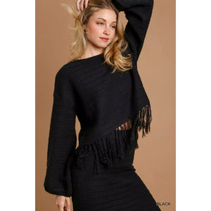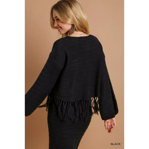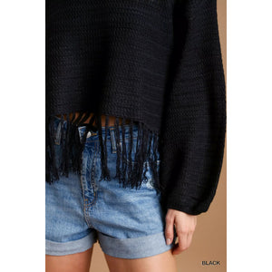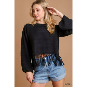 Umgee Crochet Knit Crop Top with Frey Hem