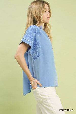 Umgee Embroidered Button Front Top