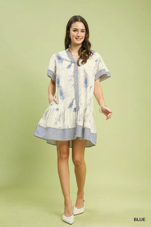 Umgee Linen Printed Button-Front Tiered Mini Dress