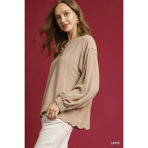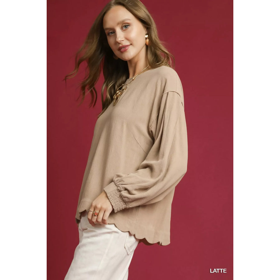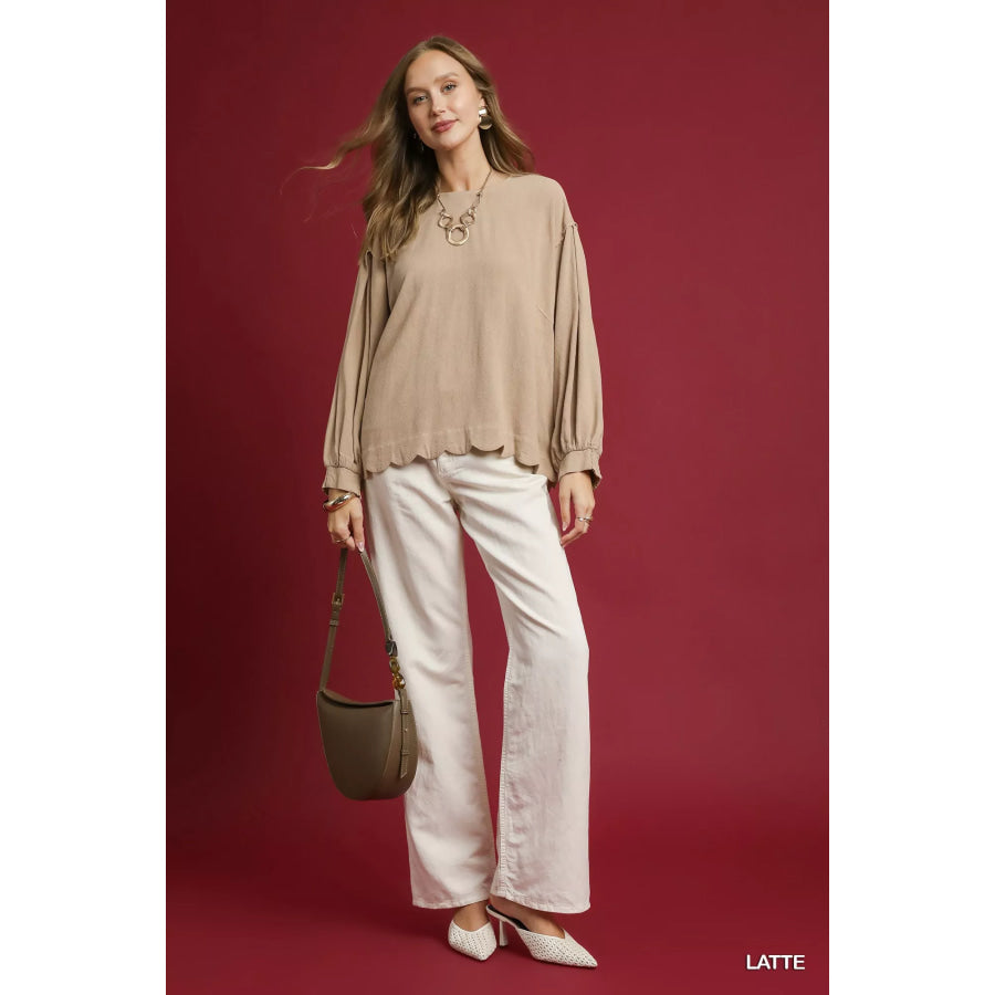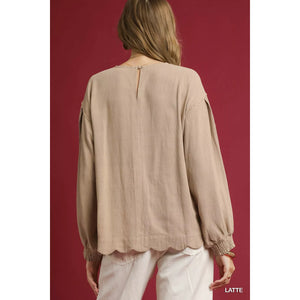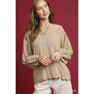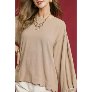 Umgee Linen Scallop Hem Long Sleeve Blouse