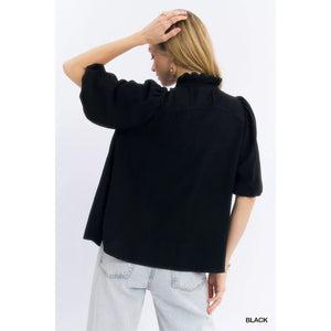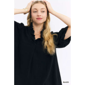 This Linen Scallop Trim V-Neck Blouse is a stylish and versatile choice for any occasion. With its elegant scallop trim detailing, it adds a touch of femininity to your outfit. The V-neck design is flattering and perfect for showcasing your favorite necklace. Made from breathable linen, it's comfortable to wear all day long. Whether dressed up with a skirt or down with jeans, this blouse is a must-have for your wardrobe.